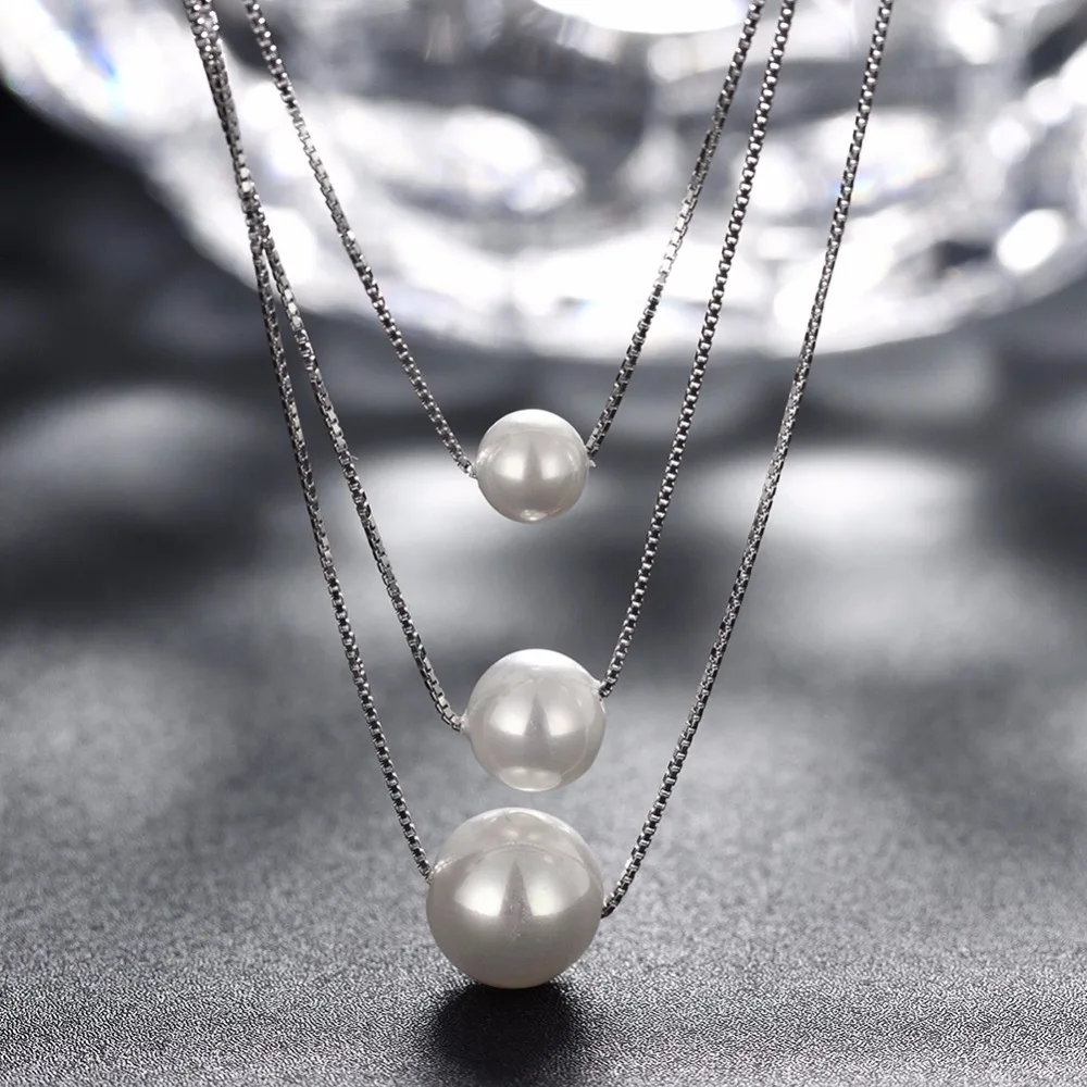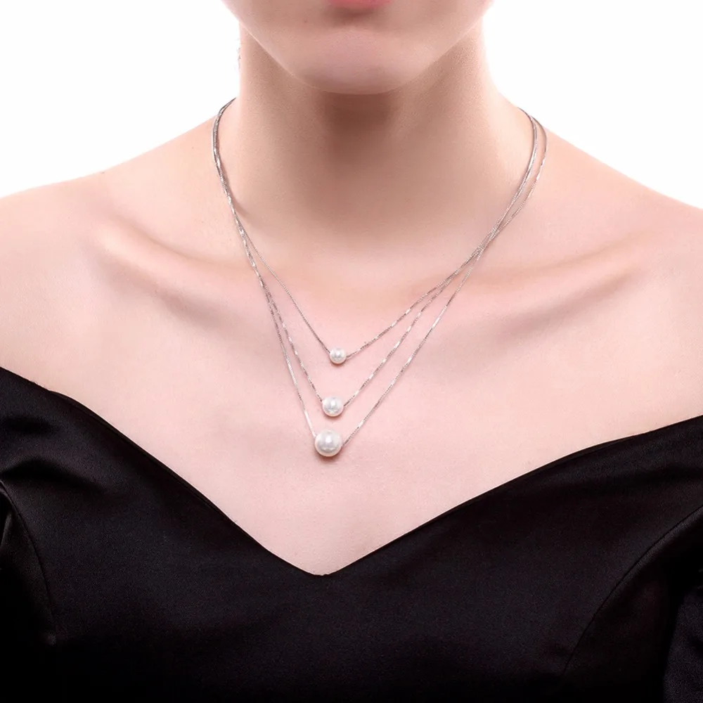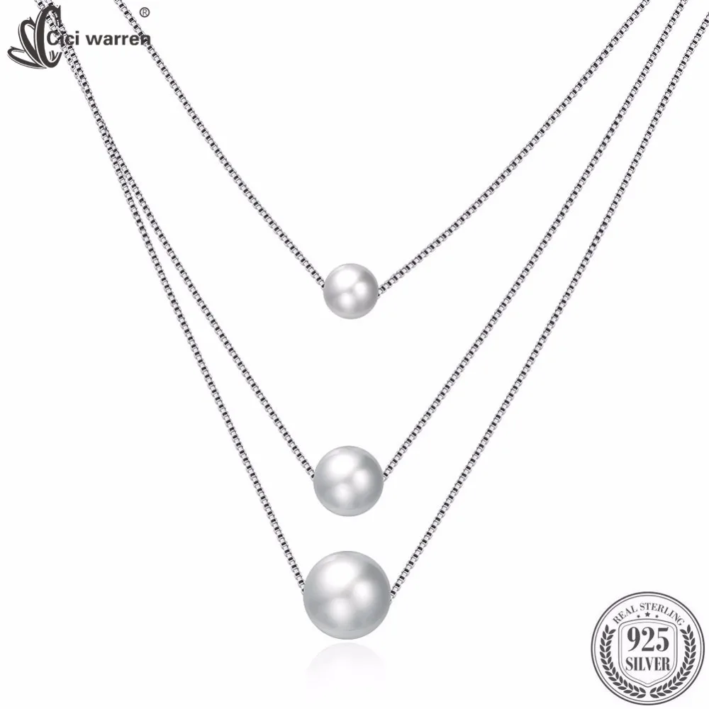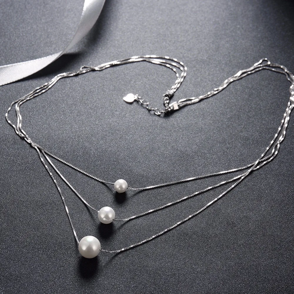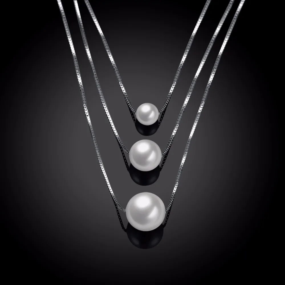 Fine Jewelry 925 Sterling Silver With 3 Pearls Pendant Necklace Round Shape Pendant Necklace Jewelry CWN013