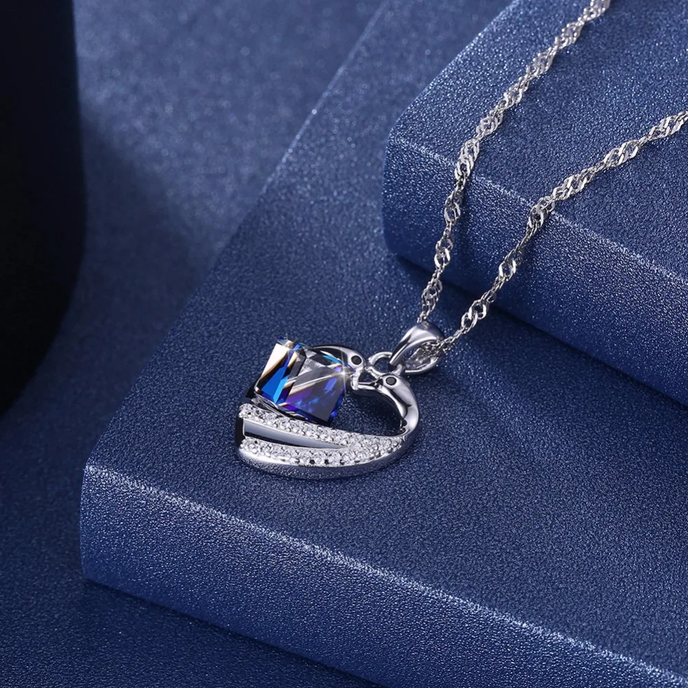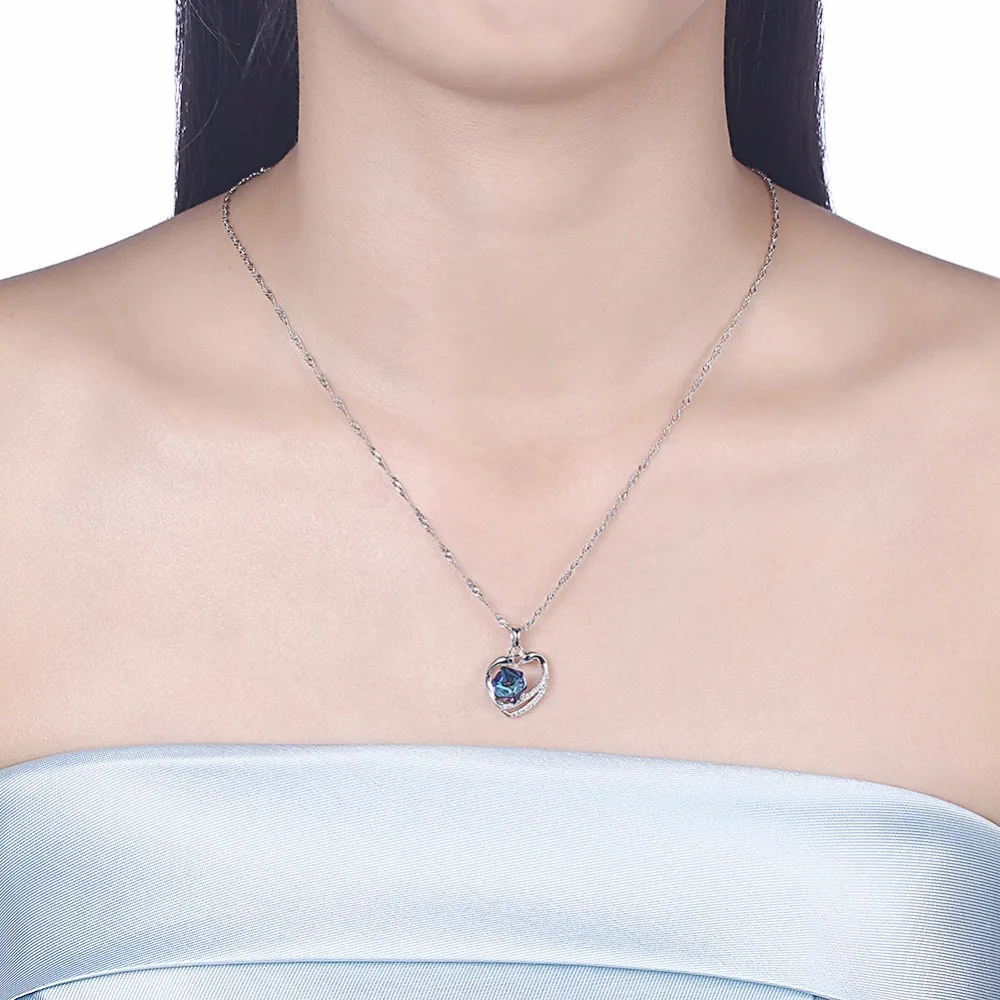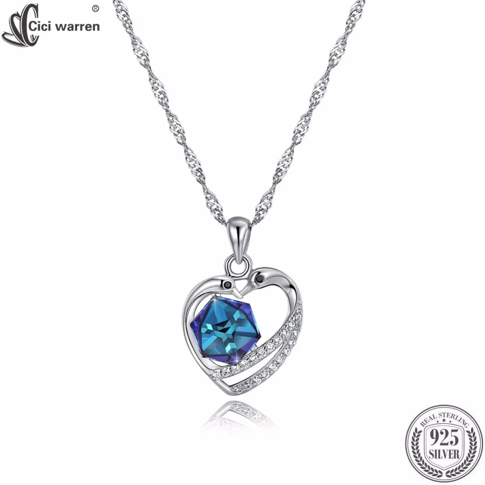 Fine Jewelry 925 Sterling Silver Women Heart Necklace Classic Christmas Series Crystal Pendant Necklace CWN066