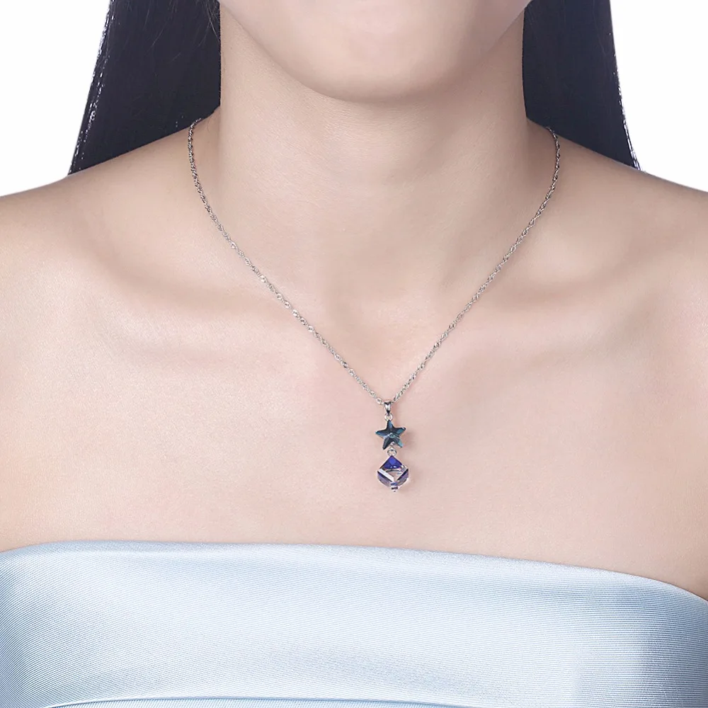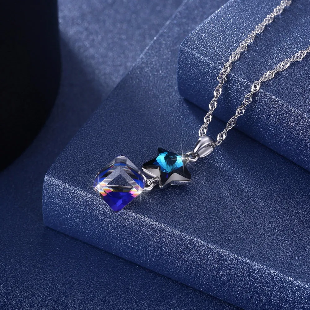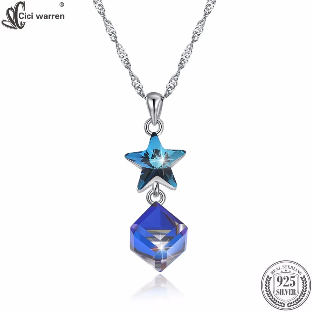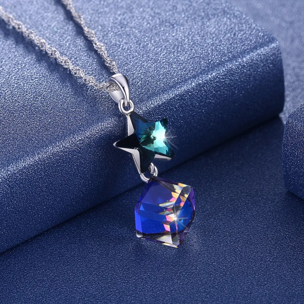 Fine Jewelry 925 Sterling Silver Women Necklace Classic Christmas Series Star Crystal Pendant Necklace CWN068