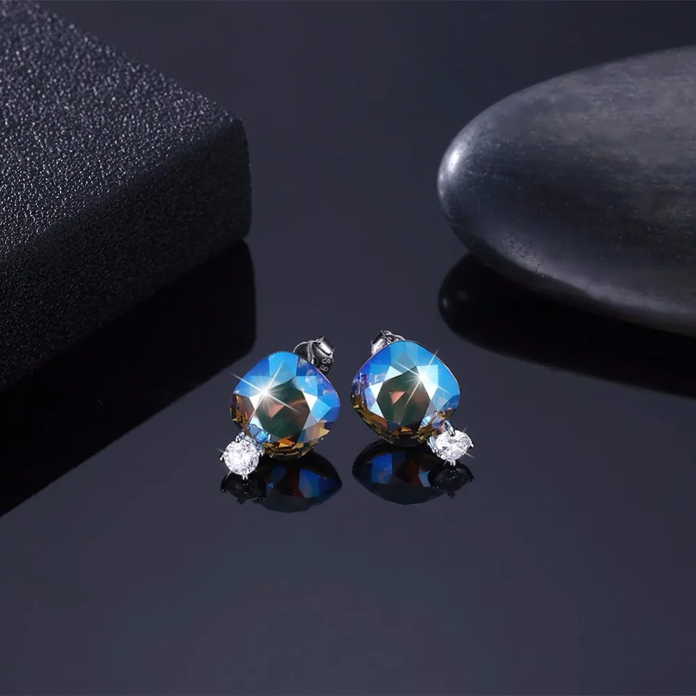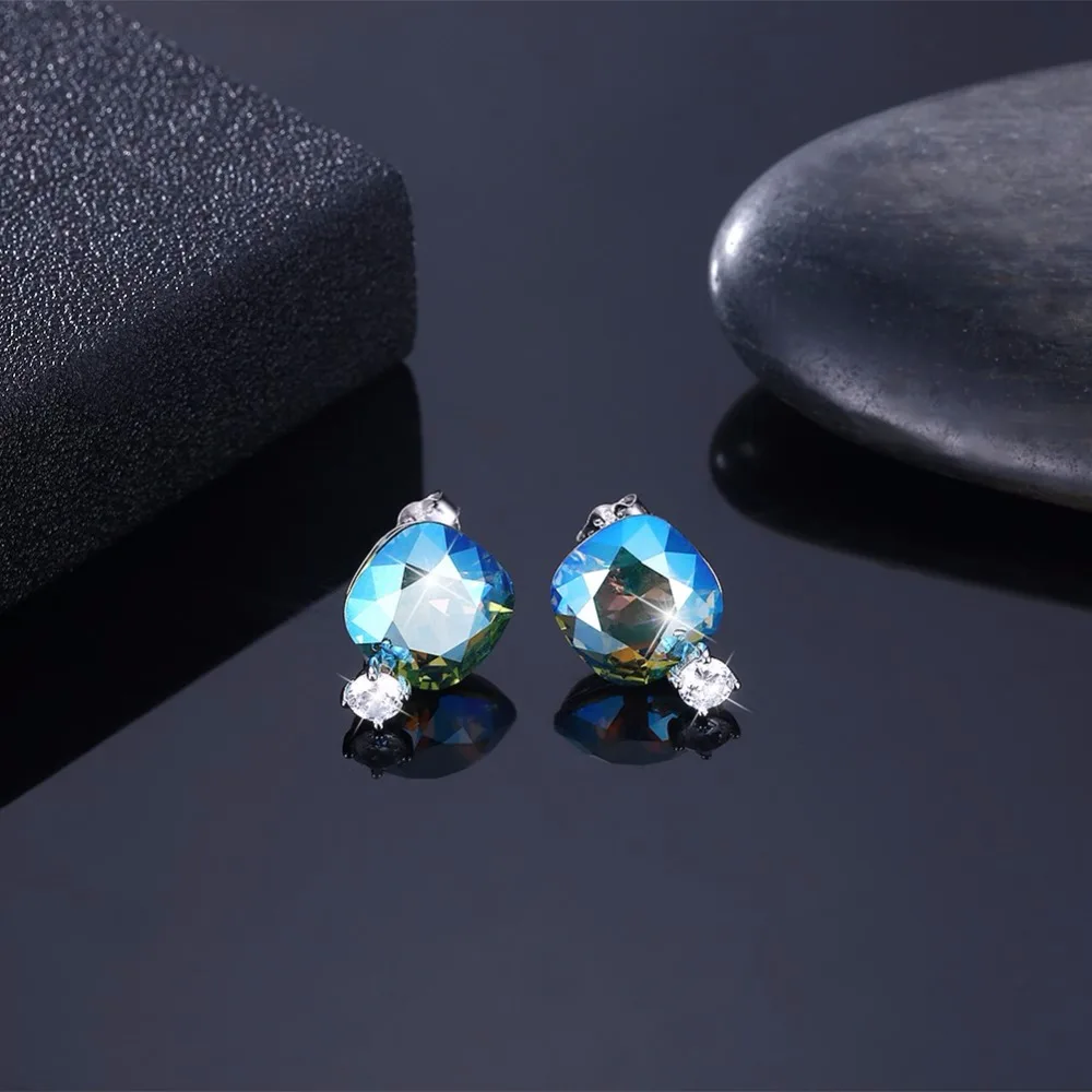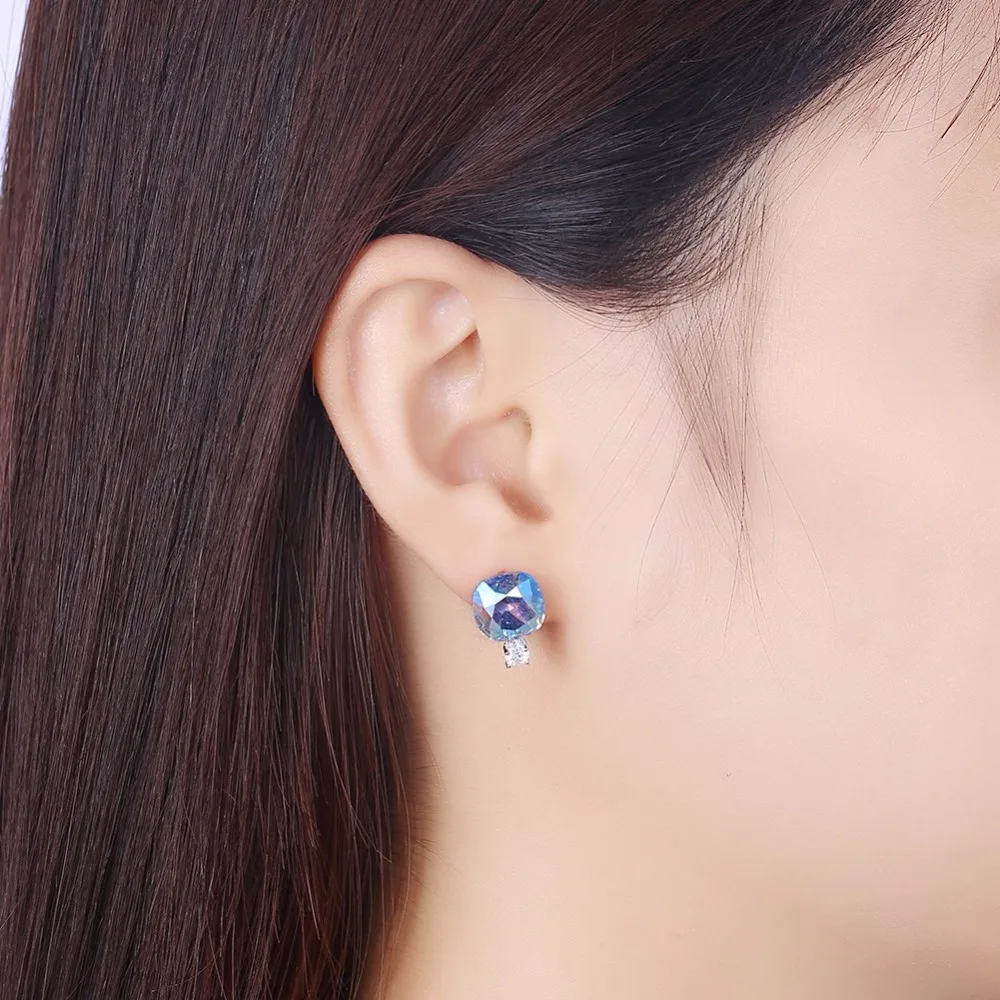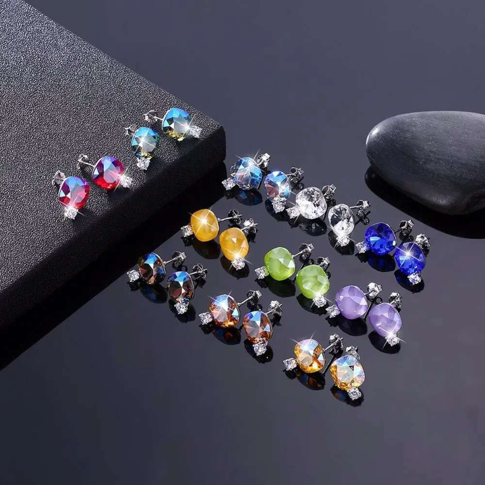 New Fine 925 Sterling Silver Stud Earrings 11 Colors Crystal From Austria Earrings For Women Jewelry CWE061