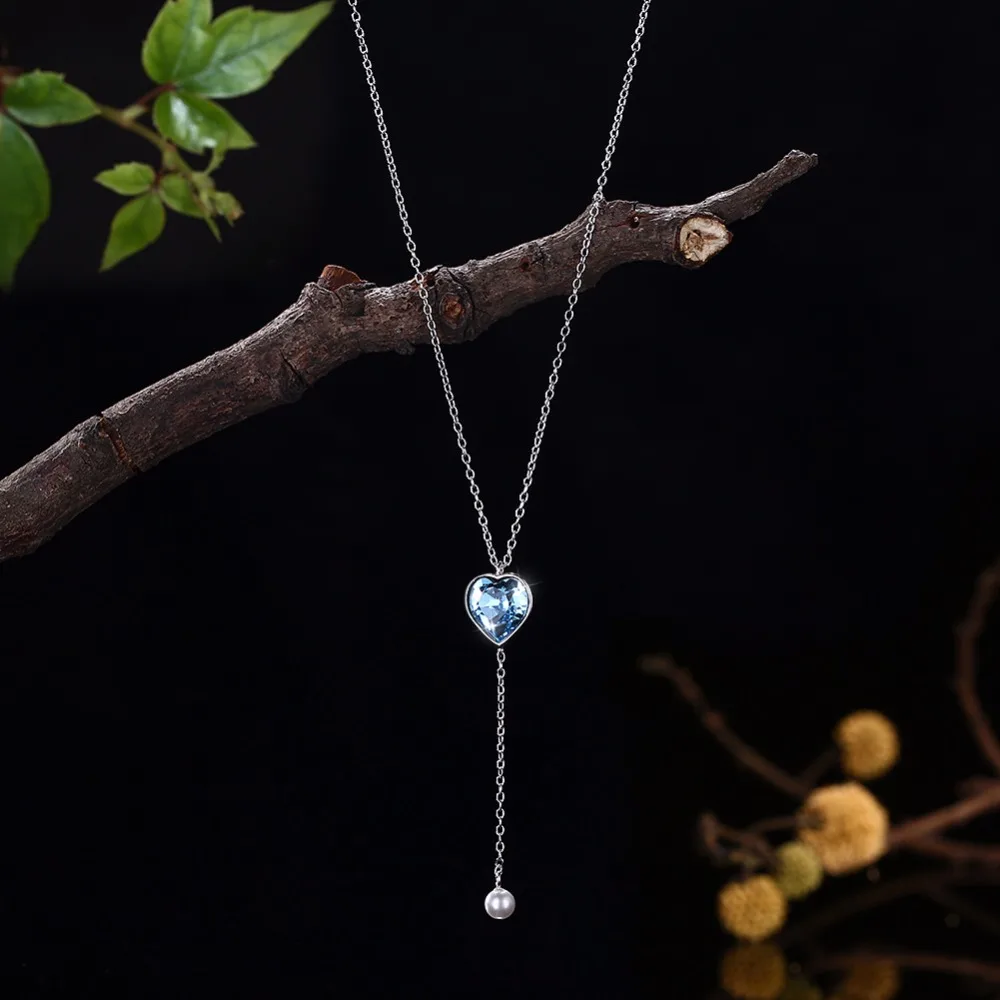 New Fine Jewelry 925 Sterling Silver Women Necklace Austria Crysta Heart Shpe Pendant Necklace CWN062