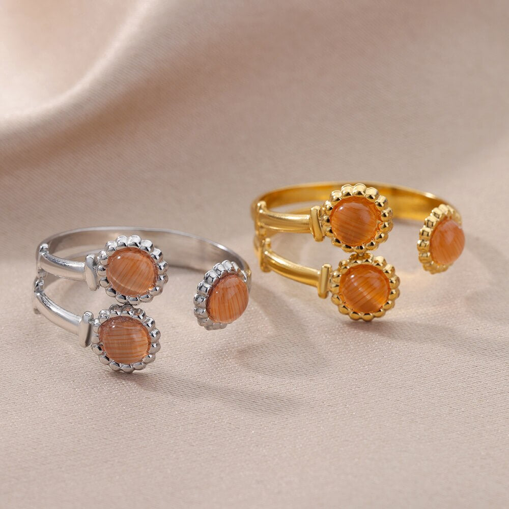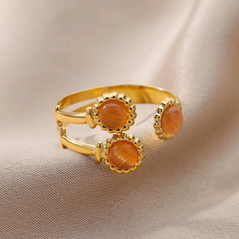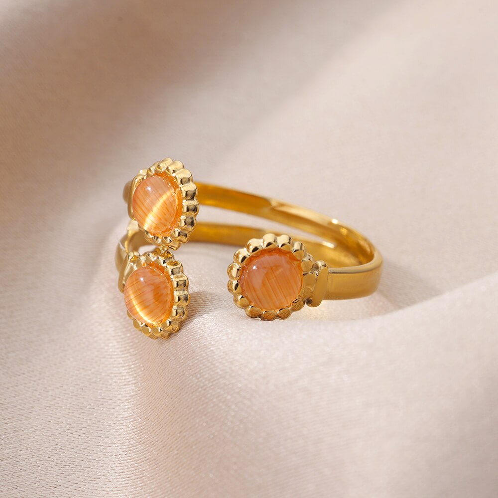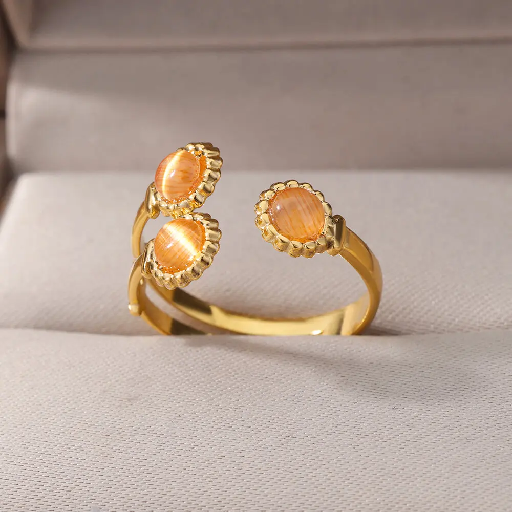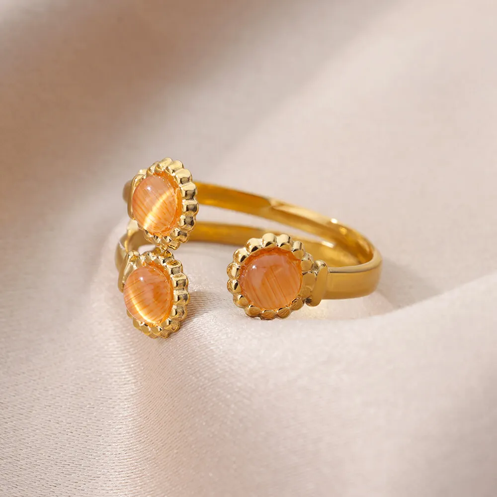 Cincin Opal Berbentuk Matahari untuk Wanita Cincin Baja Tahan Karat Estetika Terbuka Dapat Disesuaikan Batu Berwarna Perhiasan Pernikahan Beruntung Mujer