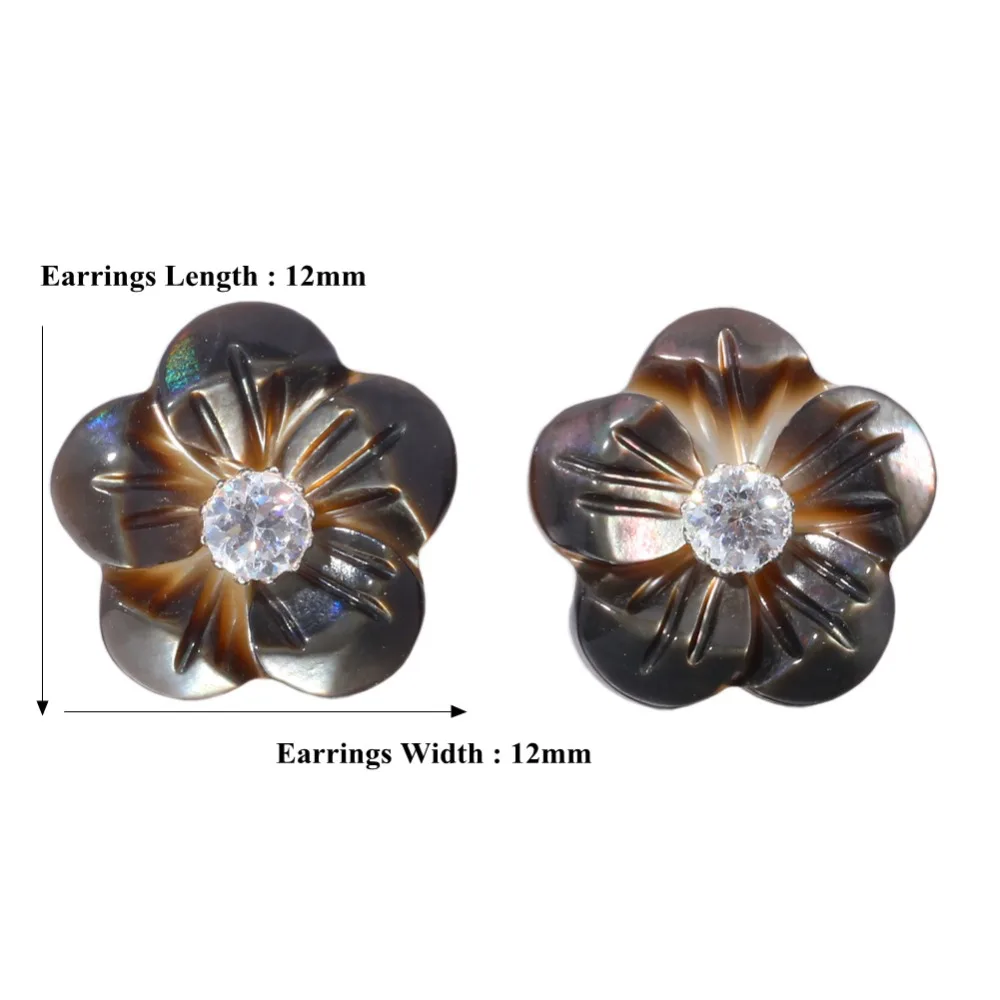 Authentic. Solid 925 Sterling Silver Natural Shell Cubic Zirconia Wholesale for Women Jewelry Stud Earrings 12mm SE033
