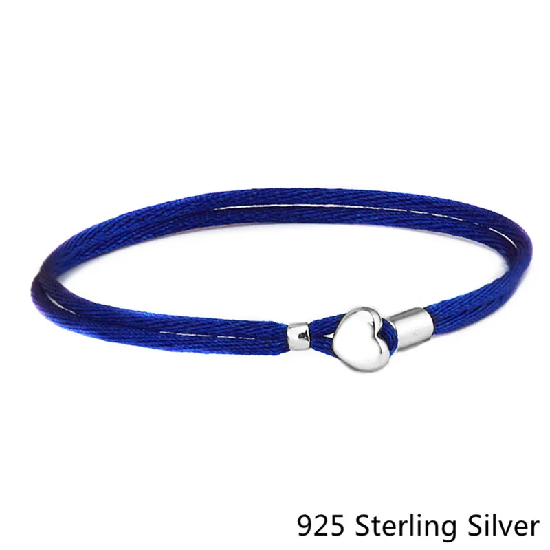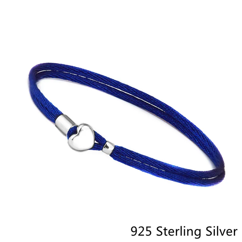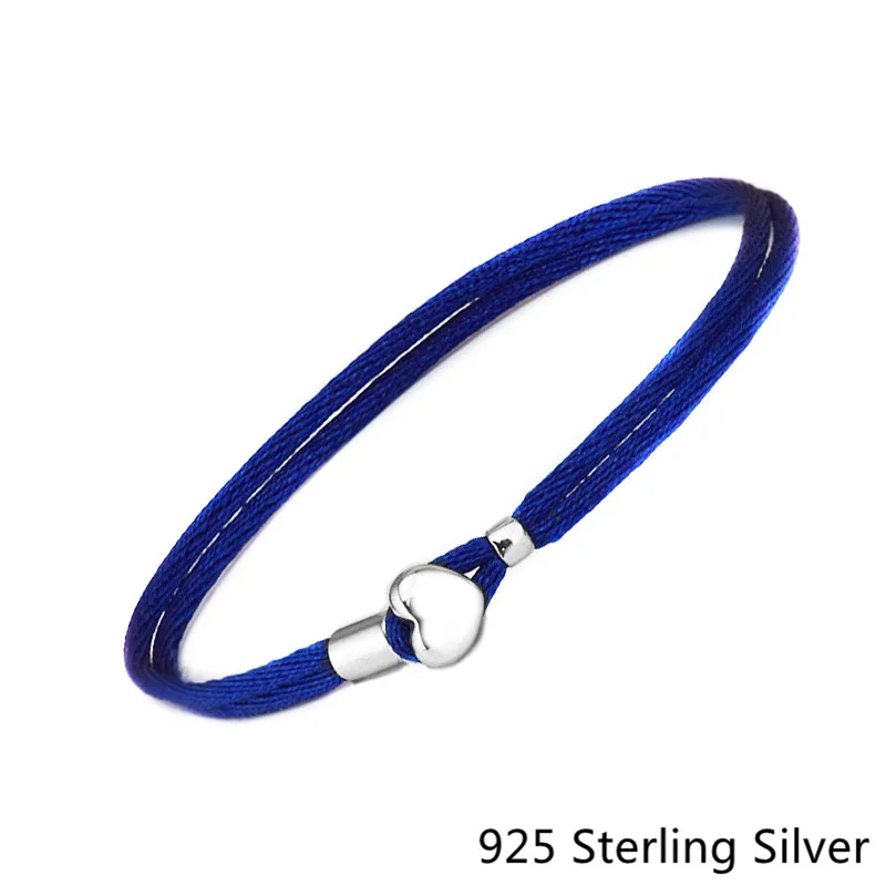 925 Sterling Silver Fabric Cord Bracelet, Dark Blue For Women Original Jewelry Making Anniversary Gift