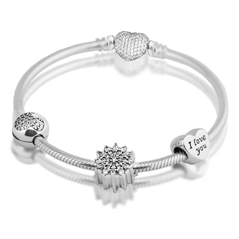 Clasp Bracelets with 3pcs Beads in a set 100% 925 Sterling Silver Jewelry