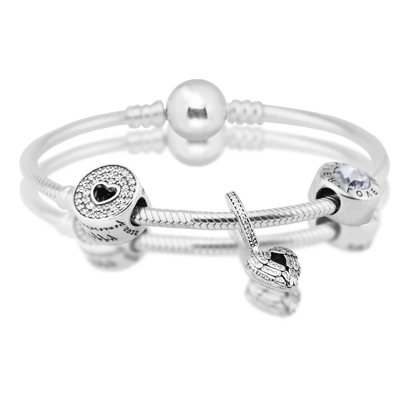Clasp Bracelets with 3pcs Beads in a set 100% 925 Sterling Silver Jewelry