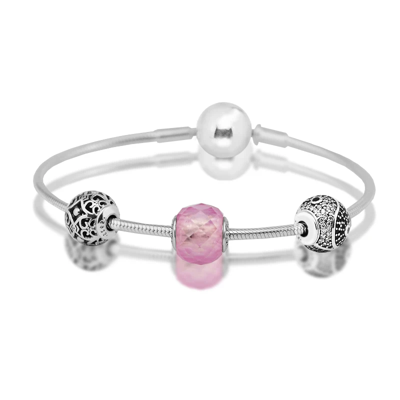 Clasp Essence Bracelets with 3pcs Beads in a set 100% 925 Sterling Silver Jewelry