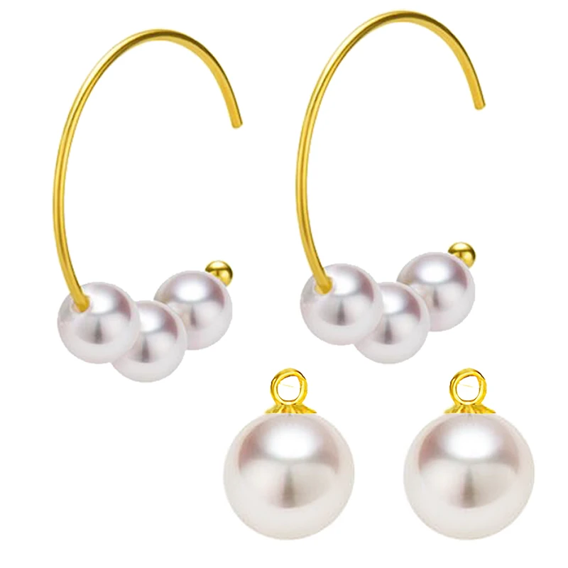 Classic career women hook earring in 18k yellow or rose gold DIY hoop removable dangle pearl pendant unique DIY earrings