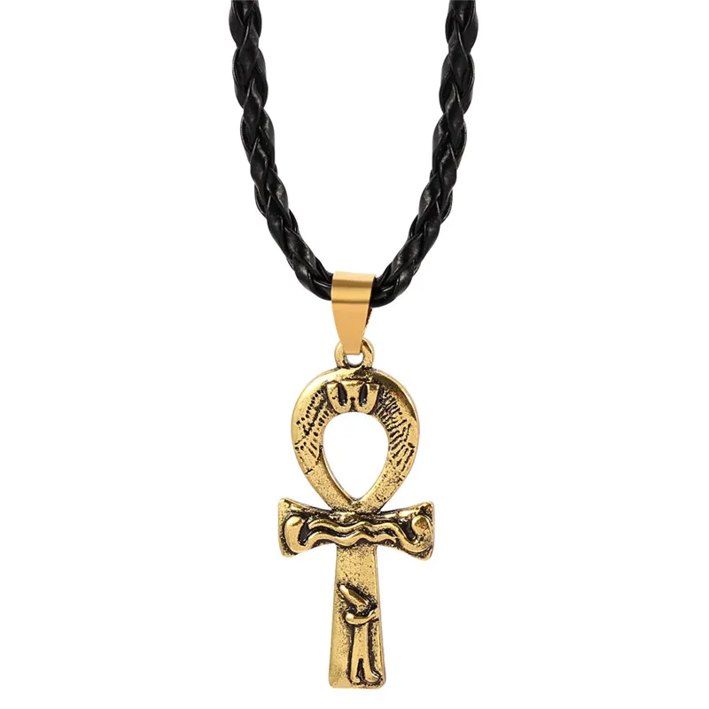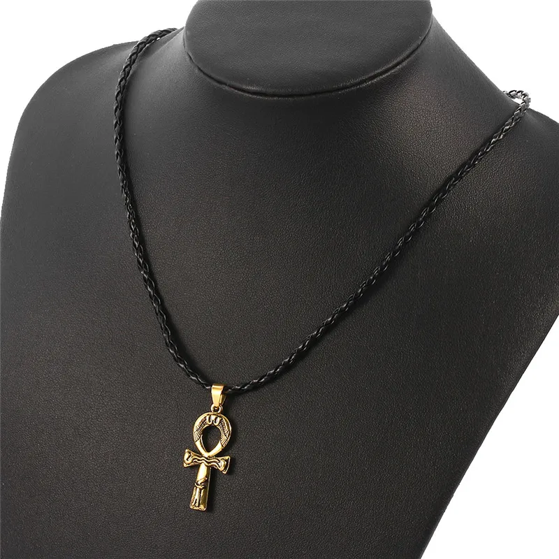 Classic Cross Egyptian Ankh Life Symbol Antique Bronze Color Pendant Short Rope Chain Necklaces Jewelry For Women Men