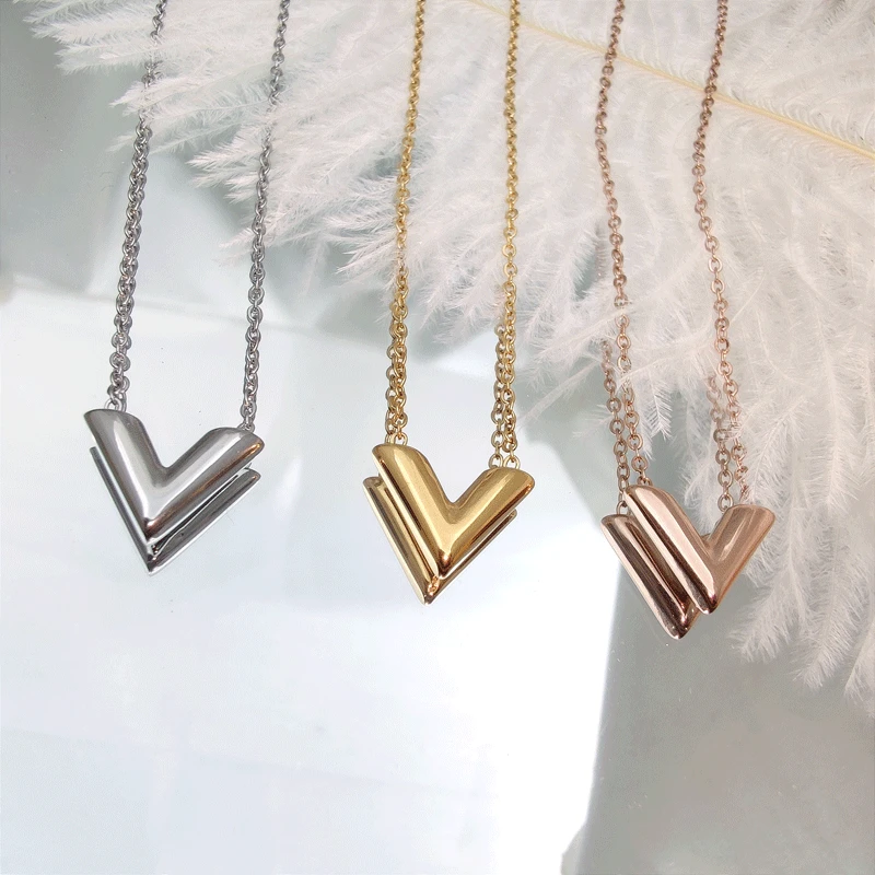 Classic Design Famous Brand V Letter Pendant Necklace For Woman Stainless Steel Woman Necklace Jewelry Female