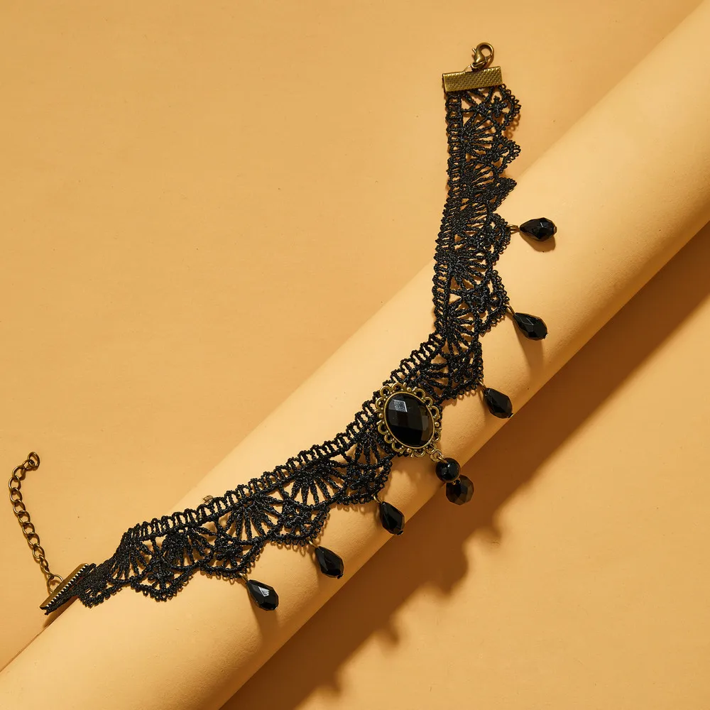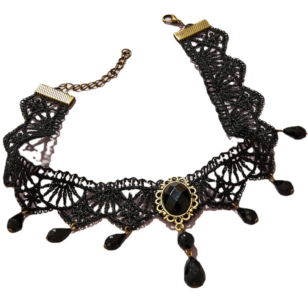 Classic Gothic Tattoo Lace Choker Necklace Stretch Velvet Chain Tassel Black Beads Pendant Necklaces Jewelry gift N0268