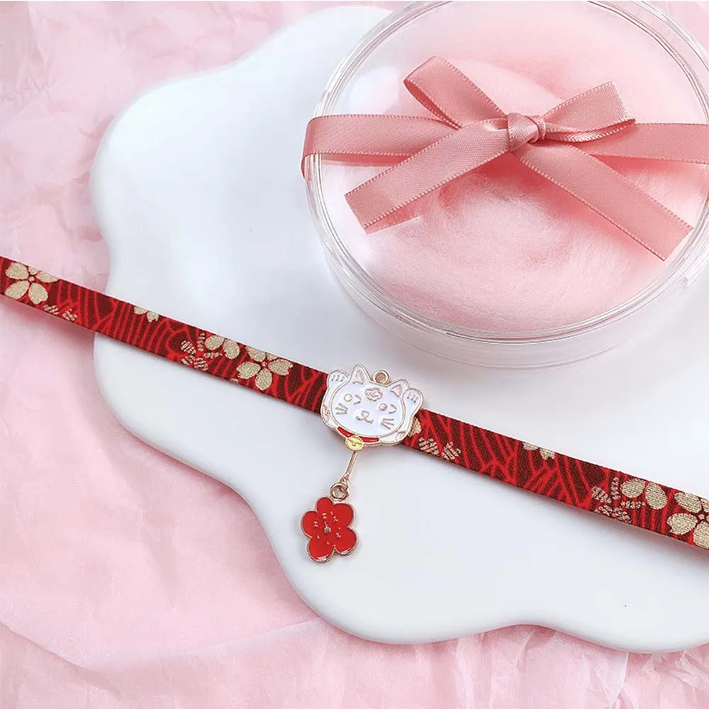 Classic Japanese Style Ribbon Rope Doll Choker Cute Romantic Women Girls Bird Cat Carp Pendant Short Necklace Jewelry