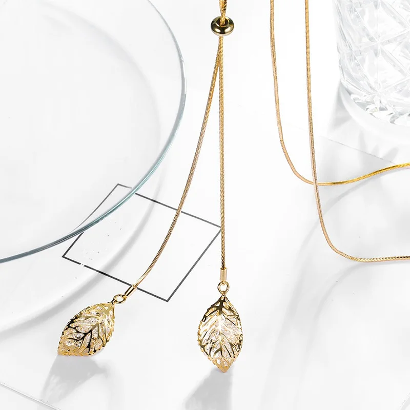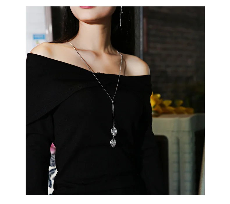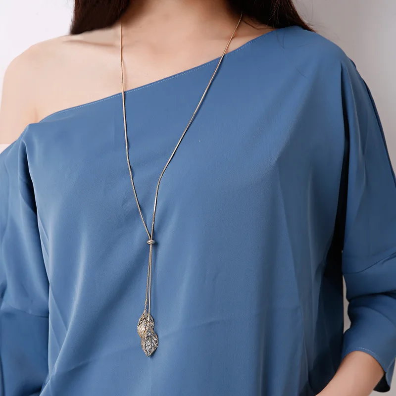 Classic Leaf Pendants Long Necklace For Women Bijoux Jewerly