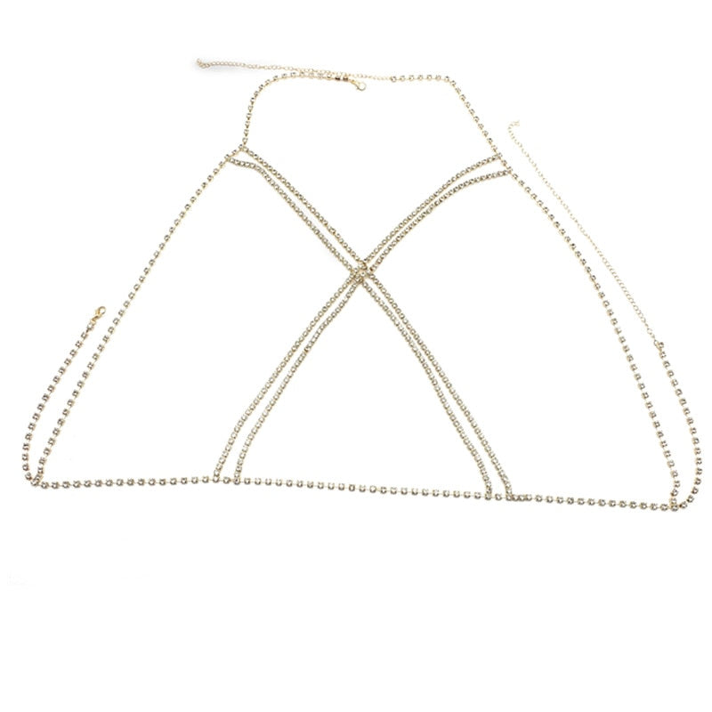Classic Overlapping Sternal Chain Woman Sexy Body Jewelry Rhinestone Geometric Trendy Golden Full Crystal Young Gift