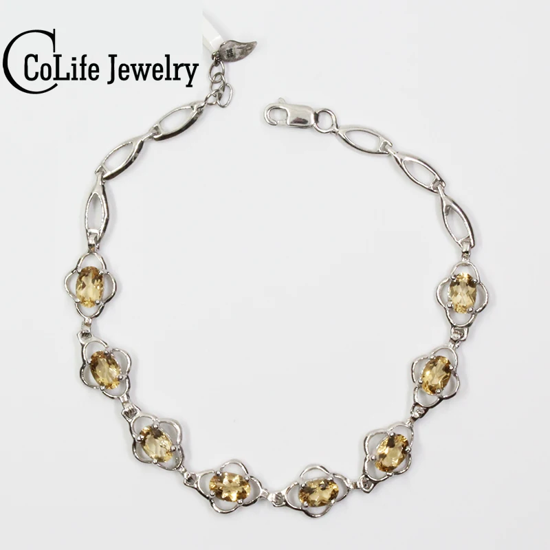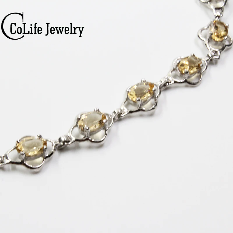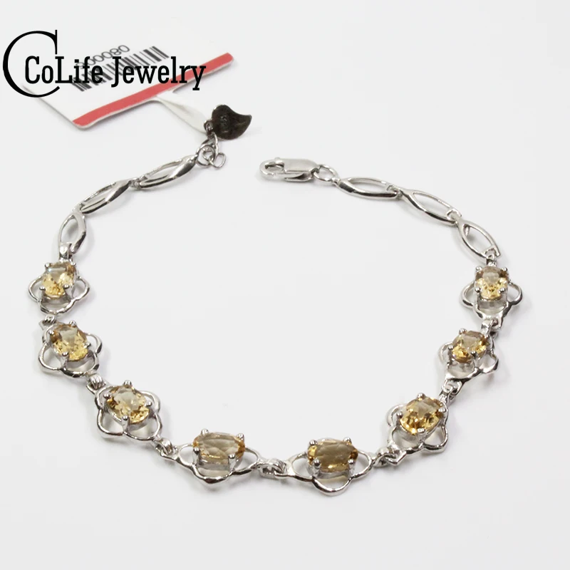 Classic silver gemstone bracelet 8 pcs natural flawless citrine silver bracelet solid 925 silver yellow crystal bracelet