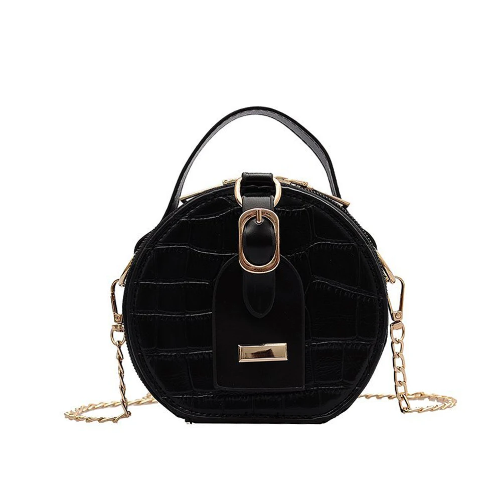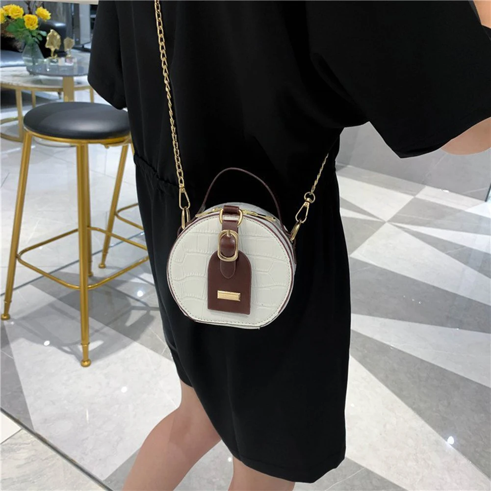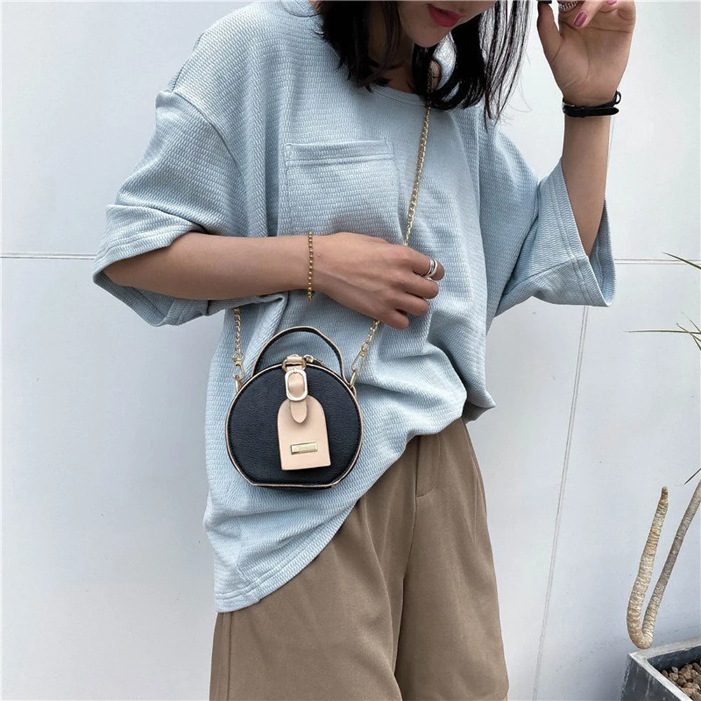 Classic Texture Mini Round Tote Shoulder Bag Delicate Creative Design Retro PU Leather Women Chain Circle Messenger Purse