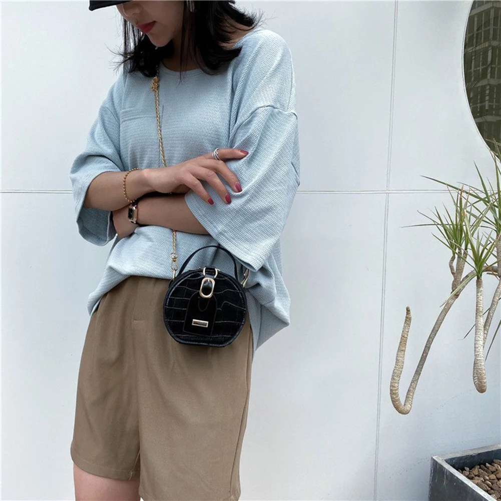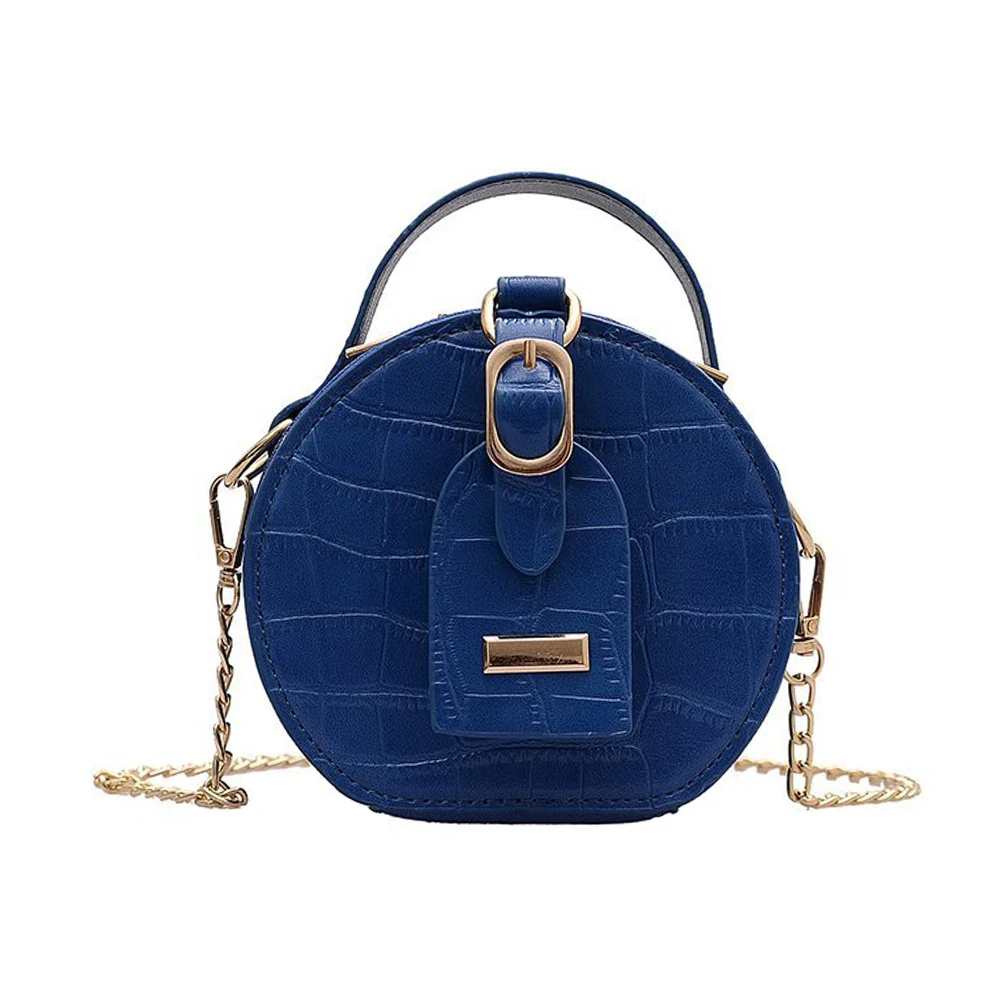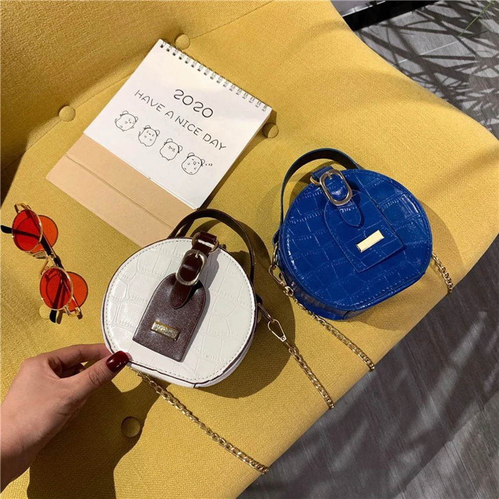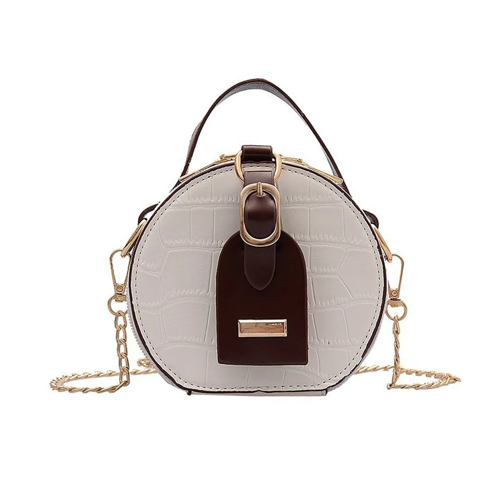 Classic Texture Mini Round Tote Shoulder Bag Delicate Creative Design Retro PU Leather Women Chain Circle Messenger Purse