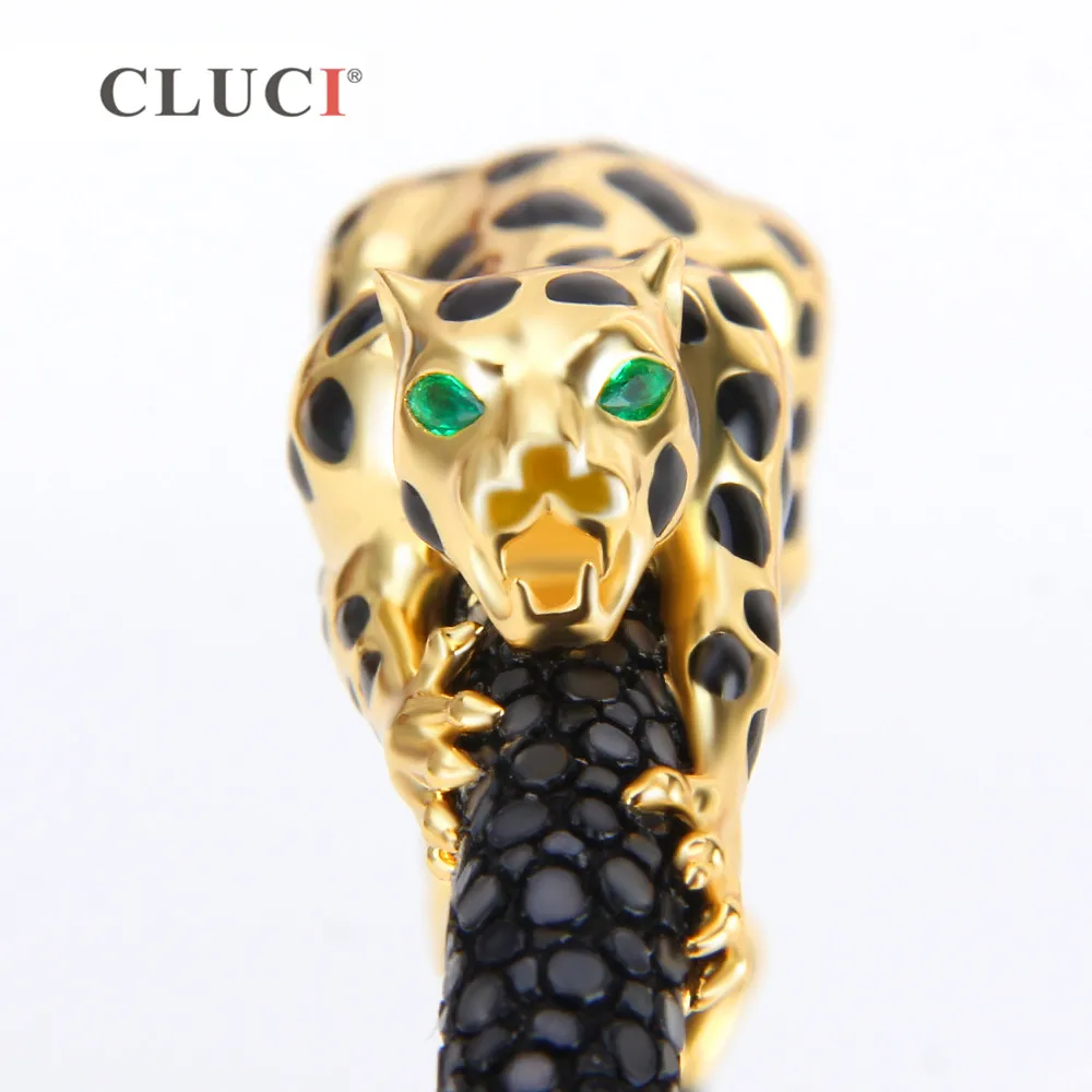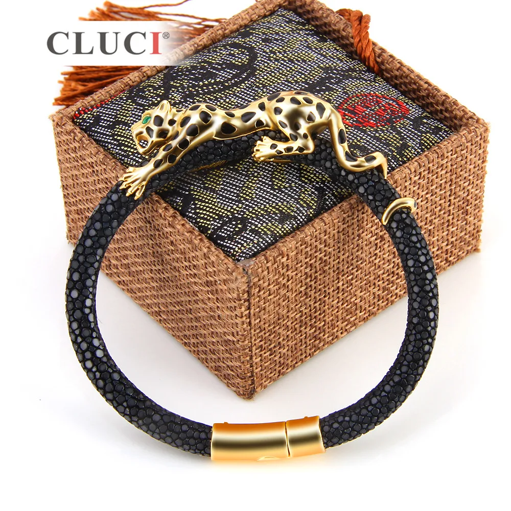 925 Sterling Silver leopard Bracelet with magnetic buckle Extraordinary Father's D Gift gold color real leather for men
