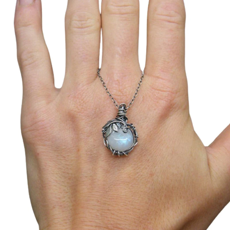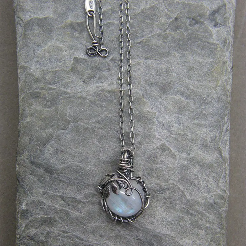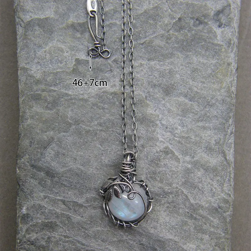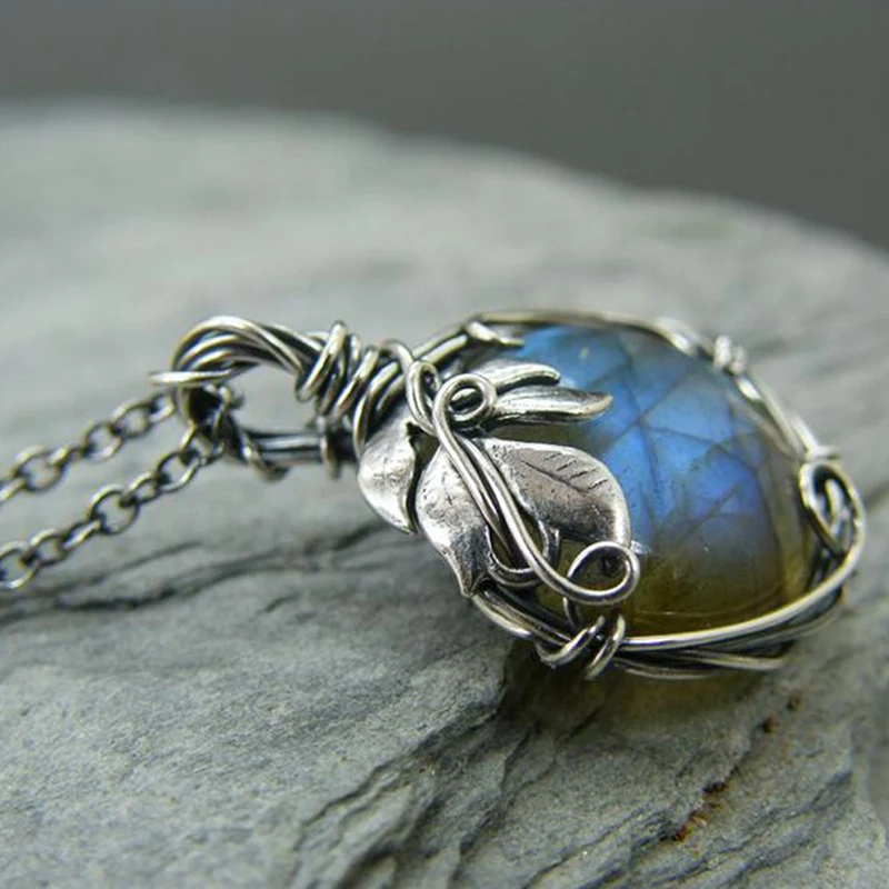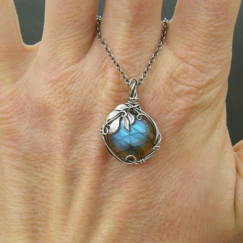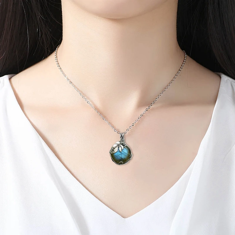 Collar botánico con labradorita tallada para mujer, piedra Natural azul, piedra lunar rugosa, joyería