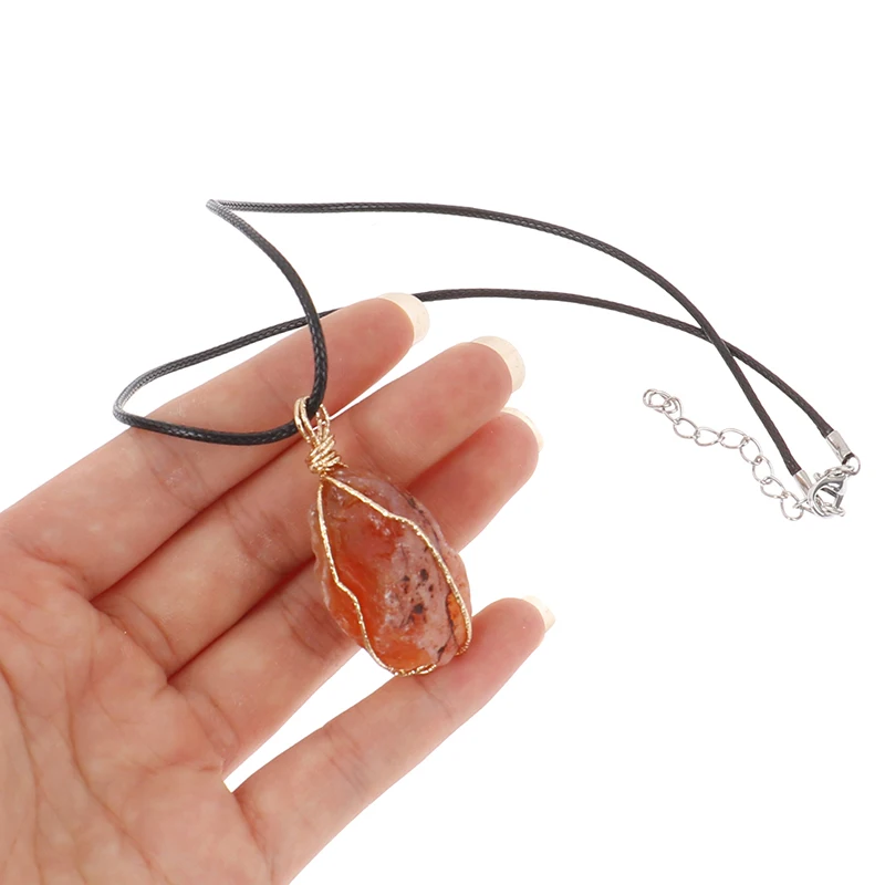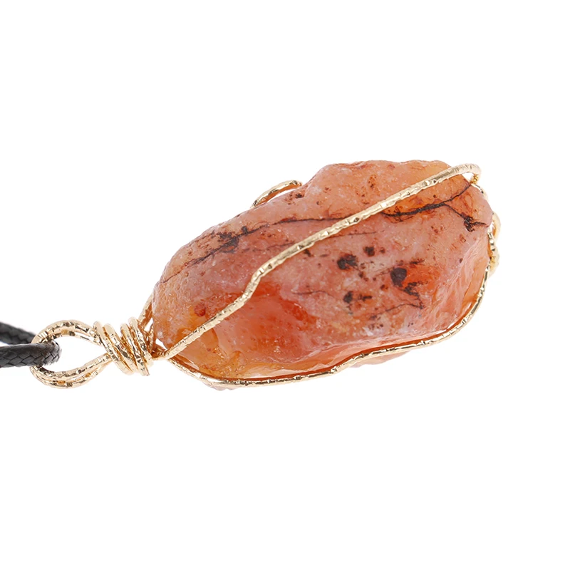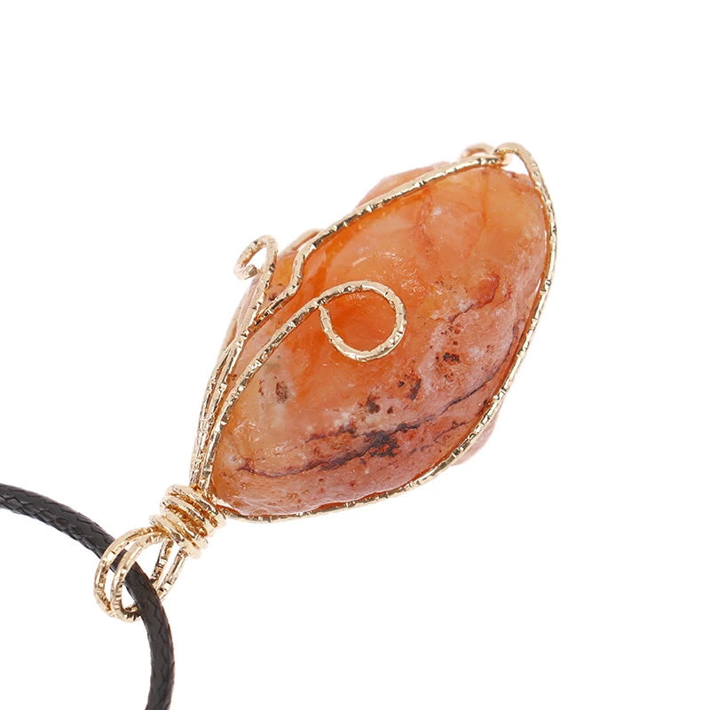 Collar de cornalina envuelta a mano para hombres y mujeres, piedra Natural curativa, Chakra de cristal, piedra de nacimiento de Julio, alambre rugoso, 1 unidad