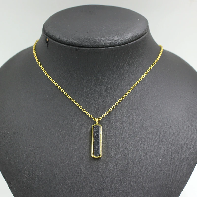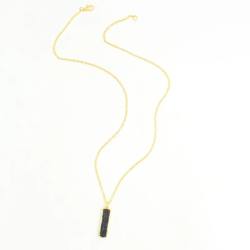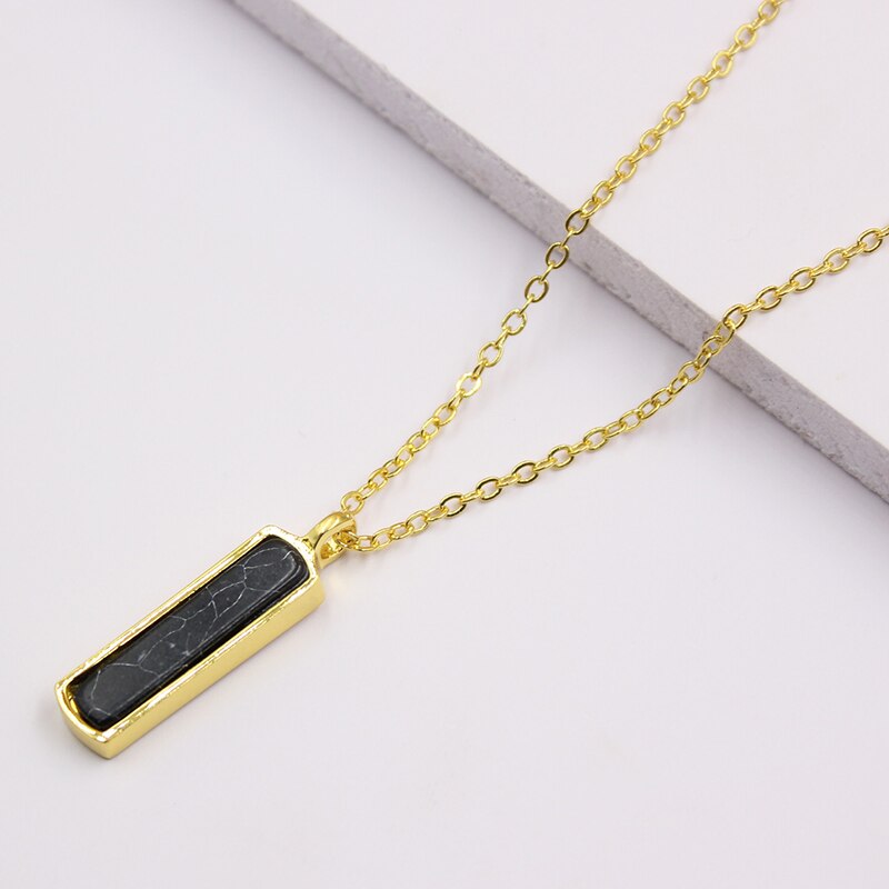 Collar sencillo chapado en oro para mujer y niña, colgante rectangular de piedra sintética negra, regalos, Bisutería