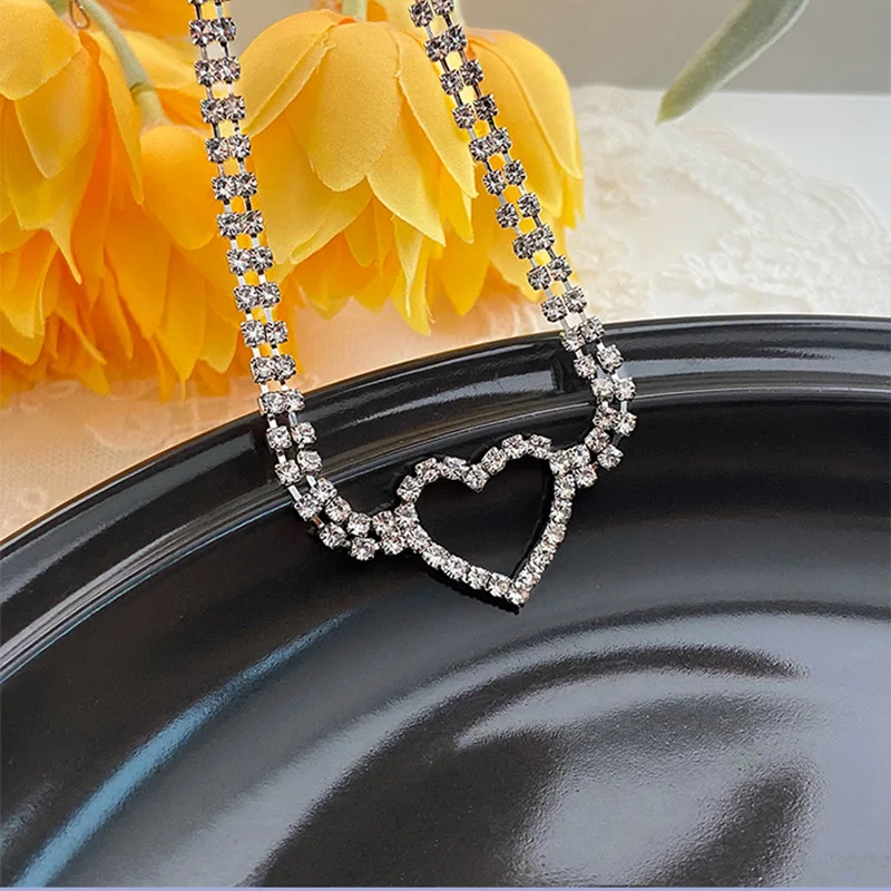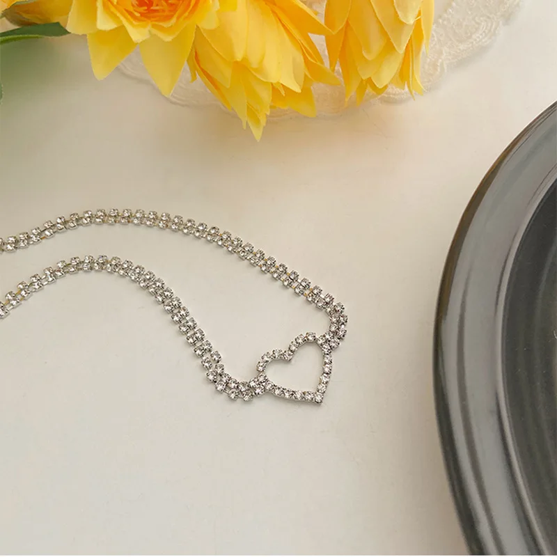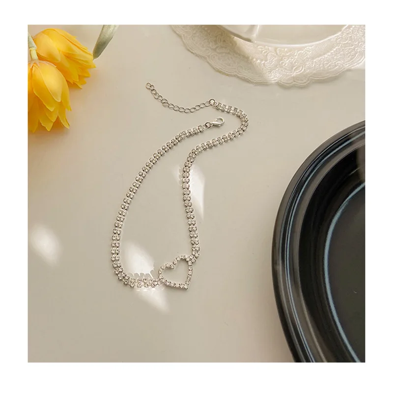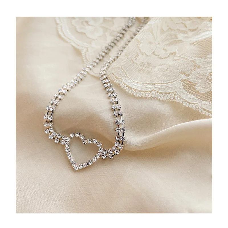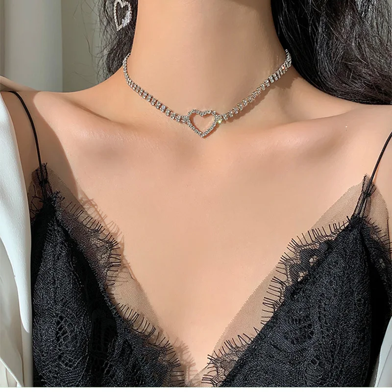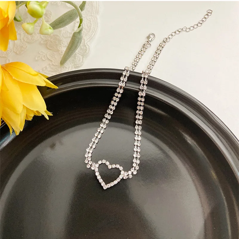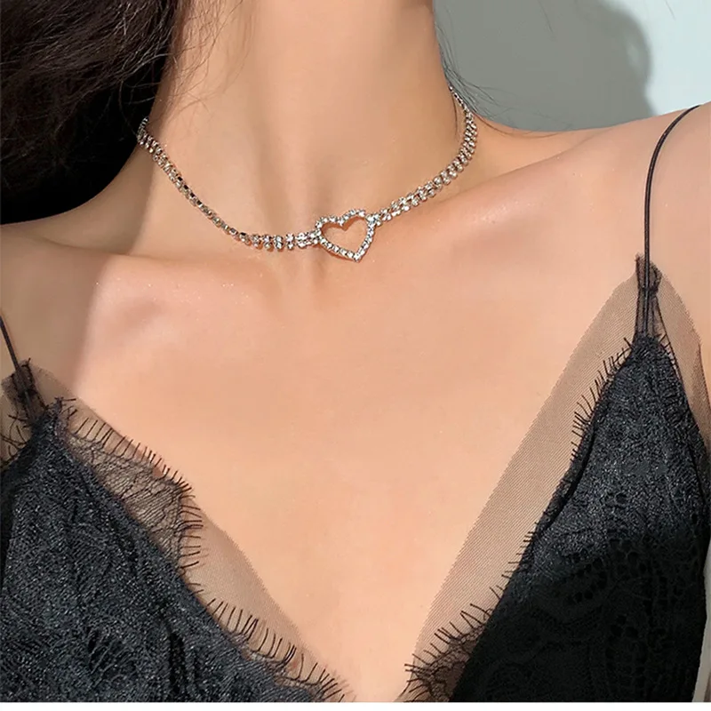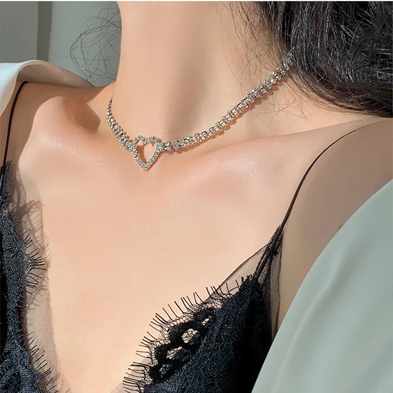 Collar Simple Heart Women necklaces chokers Neck chain Office career Rhinestone Jewellery Crystal Gift Luxurious 1pcs