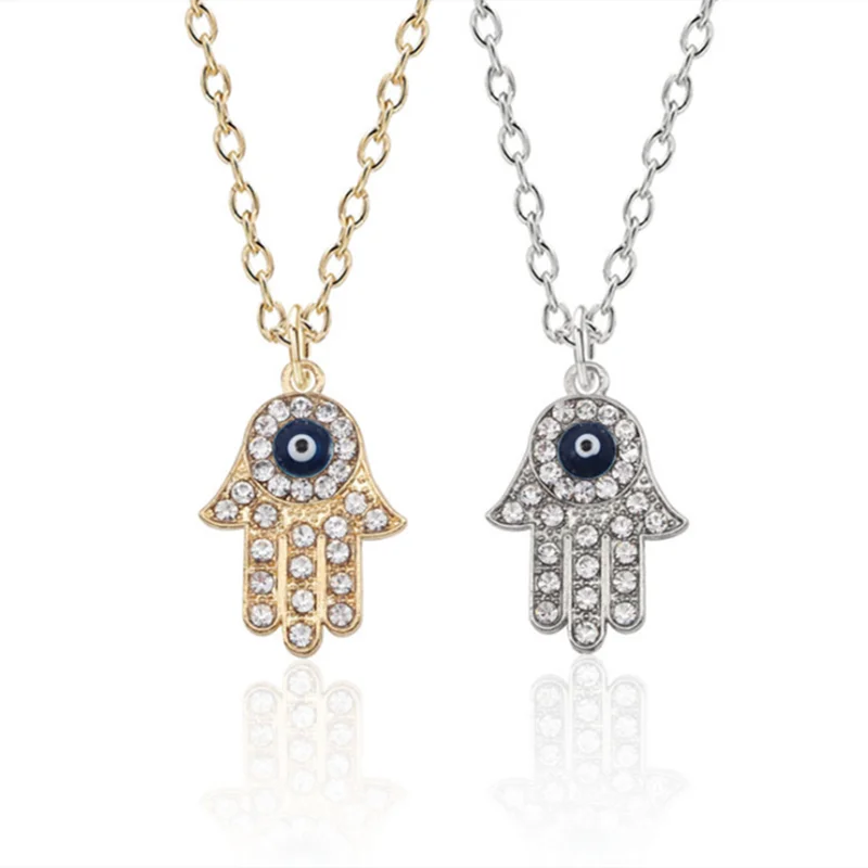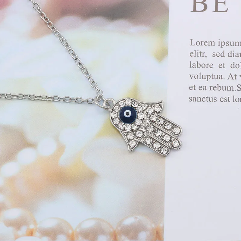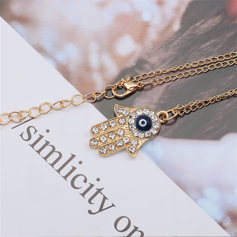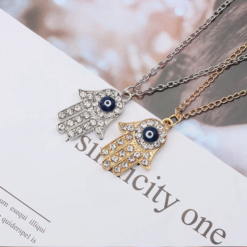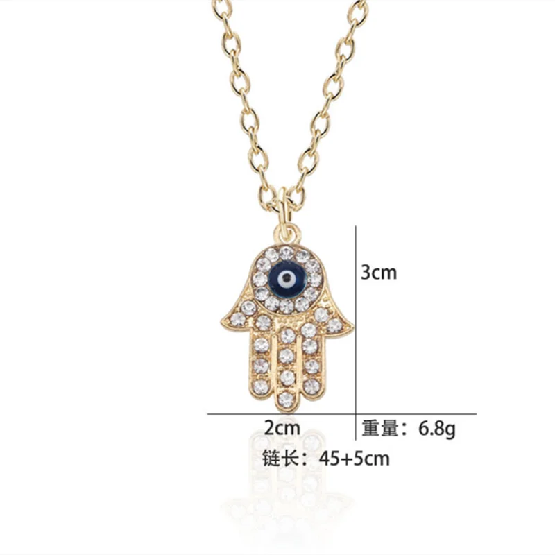 Collar turco de la mano de Fátima para hombre y mujer, Gargantilla de cristal, collar de mano, cadena larga de oro, joyería de la suerte