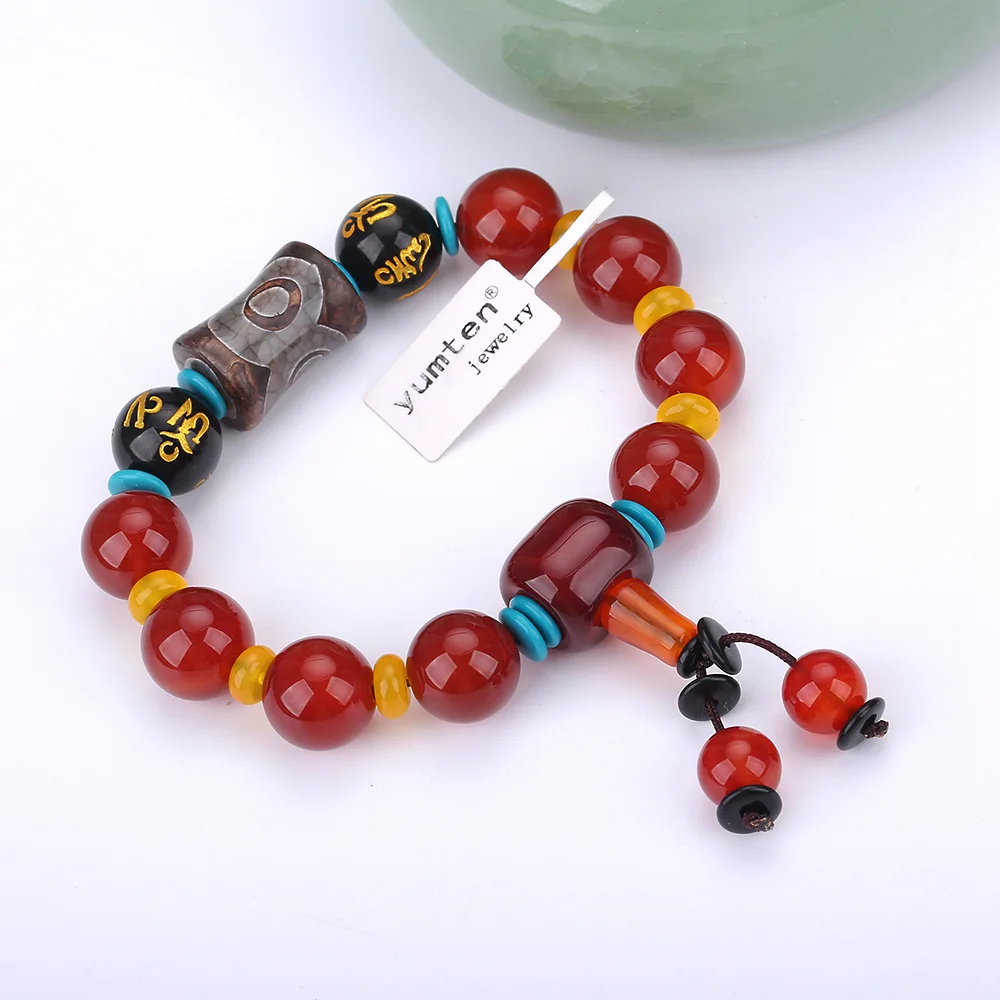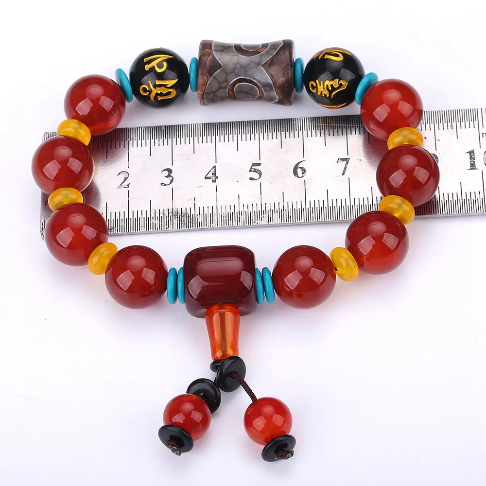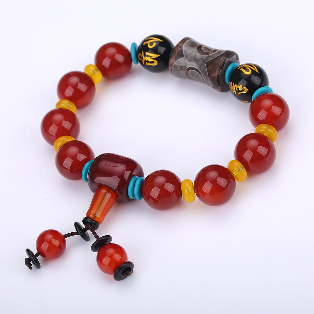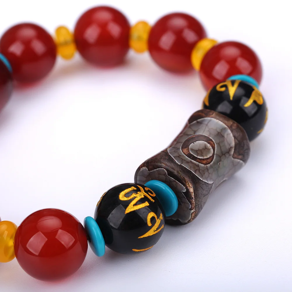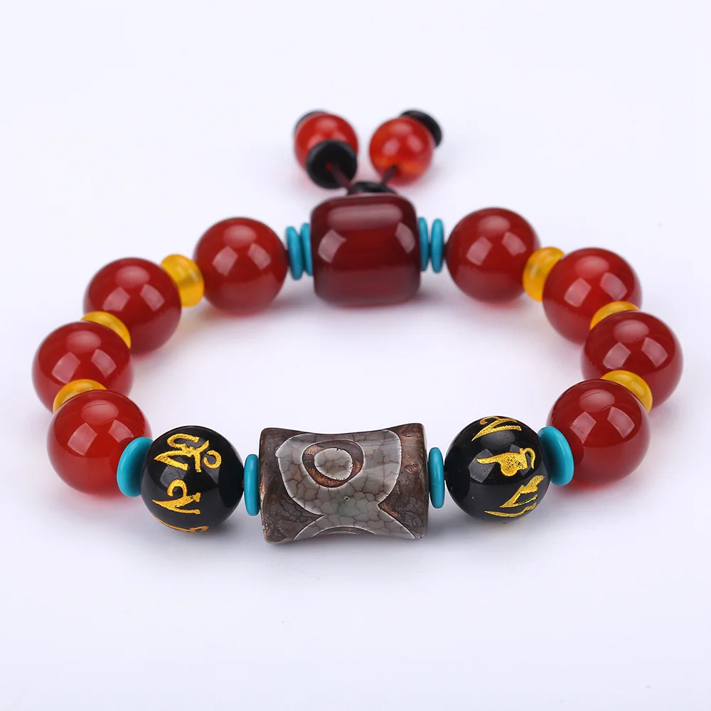 Colored Dzi Red Agate Obsidian Buddha Beads Protection Natural Stone Tibet Beads Amulet Bracelet High Qaulity Gift