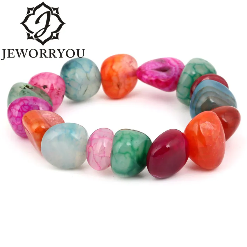 Colorful Agate Bracelet Women Ice Crack Irregular Natural Stone Bracelets Beach Sea Travel Bracelets For Women Jewelry