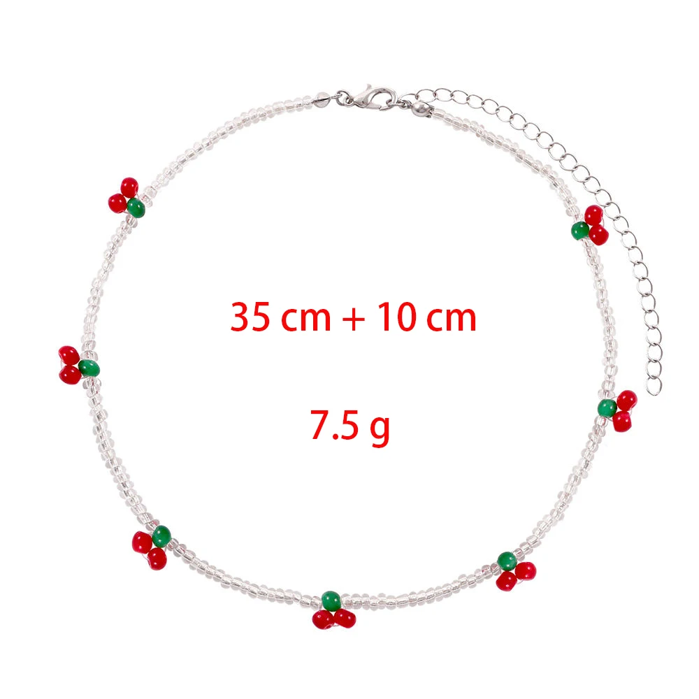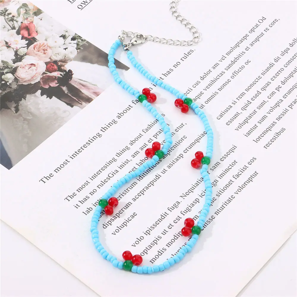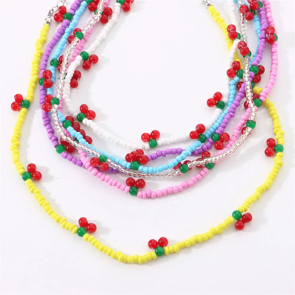 Colorful Beads Cute Cherry Choker Necklaces For Women Girls Korean Fruit Rainbow Beaded Necklace 2021 Trend Jewelry Gift