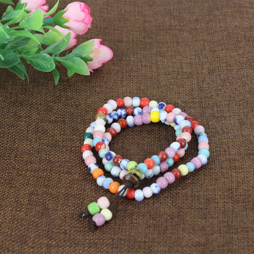 Colorful Ceramic Beads Women Ethnic Bracelets Multi Layer Charms Beads Elastic Bracelets Bangles Jewelry for Women BR-14