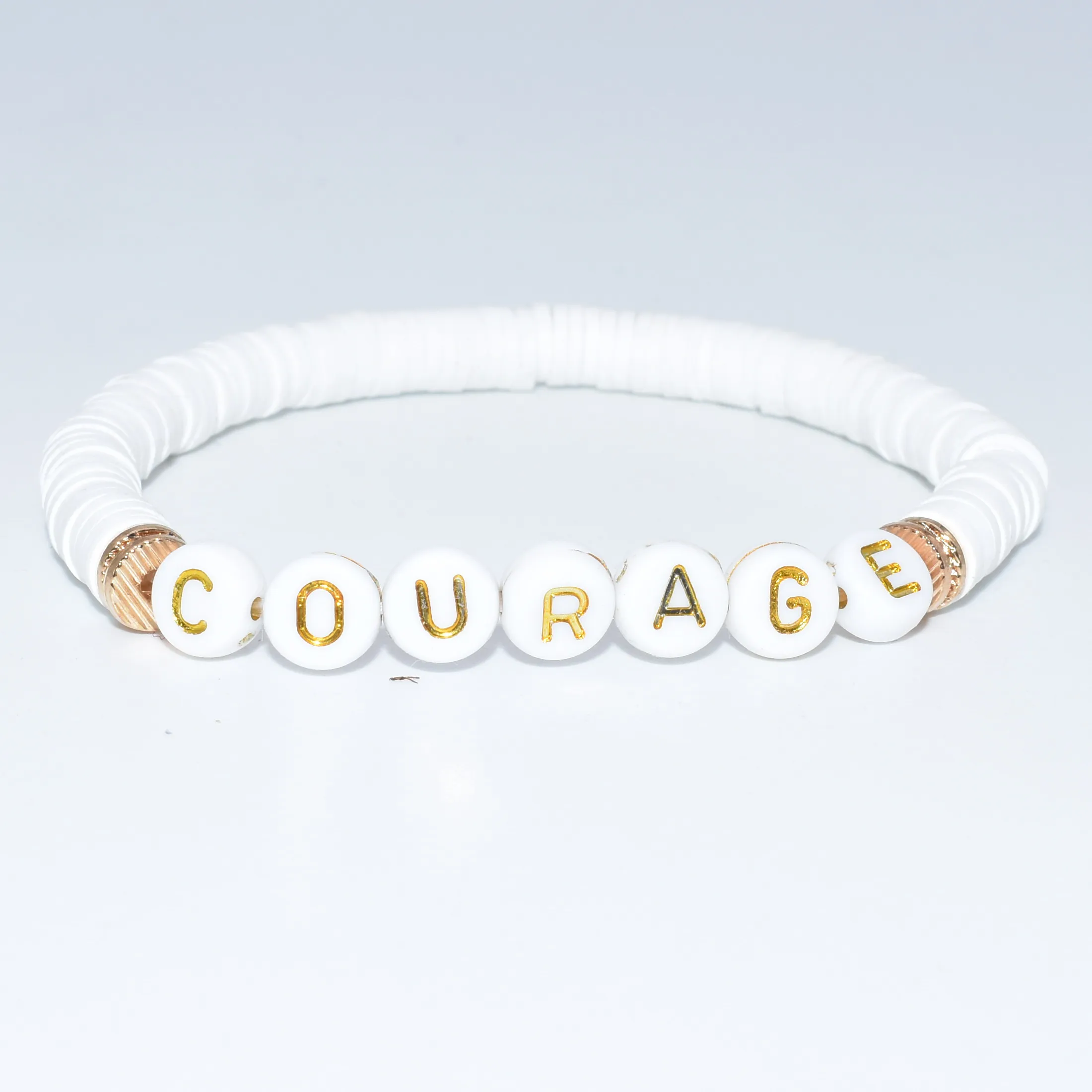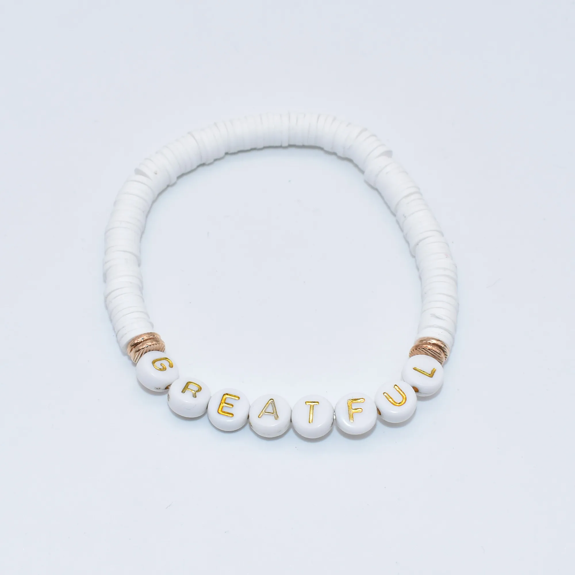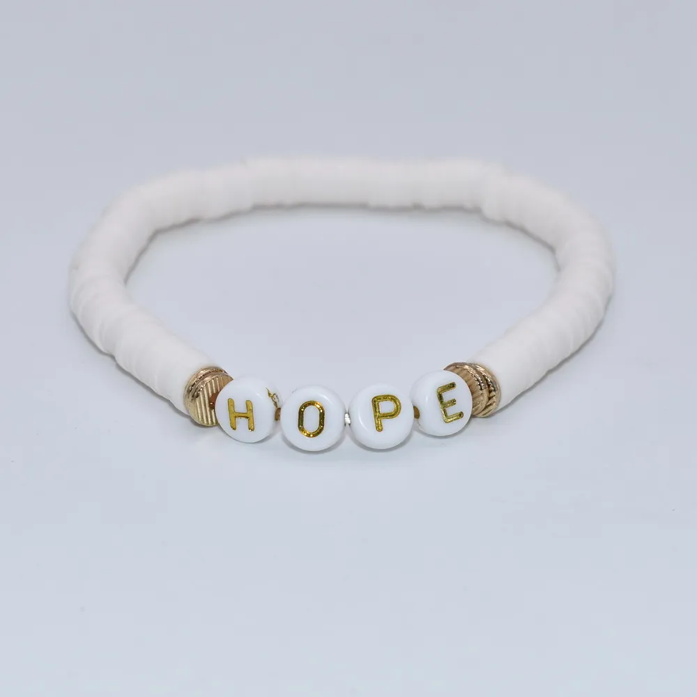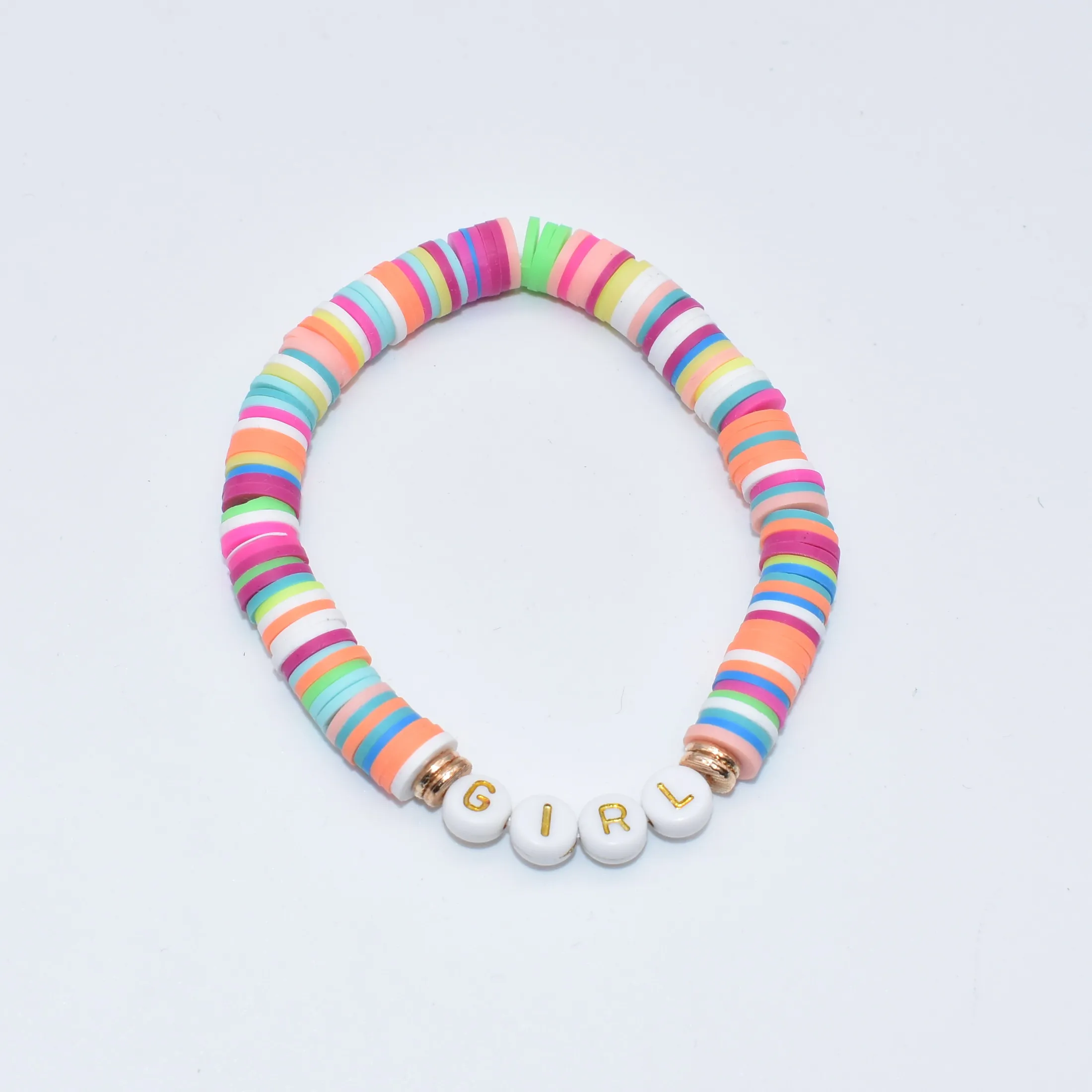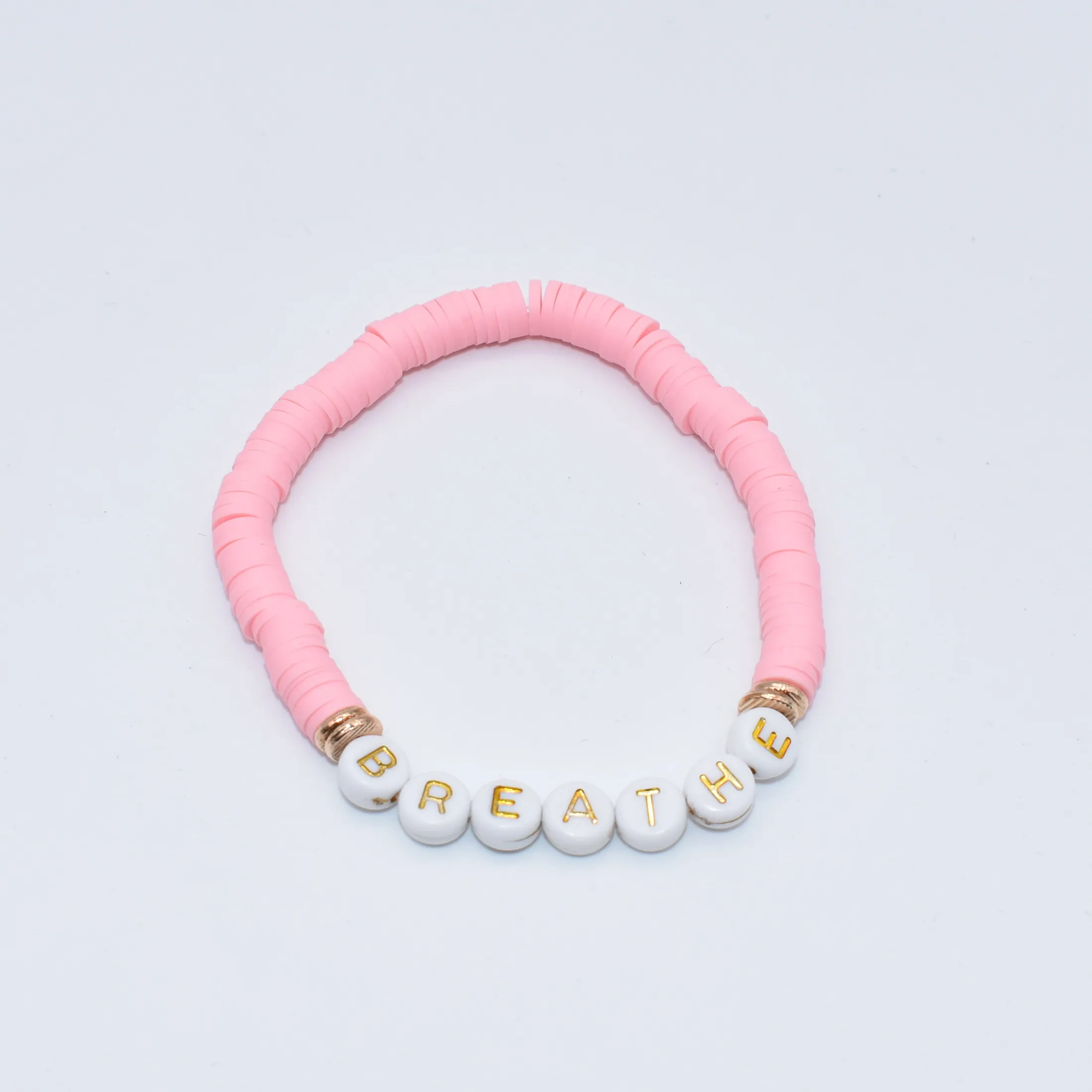 Colorful Polymer Clay Disc Brush Gold Zinc Alloy Metal Spacers Words FAITH BREATHE MAMA BELIEVE stretch Bracelet For Women