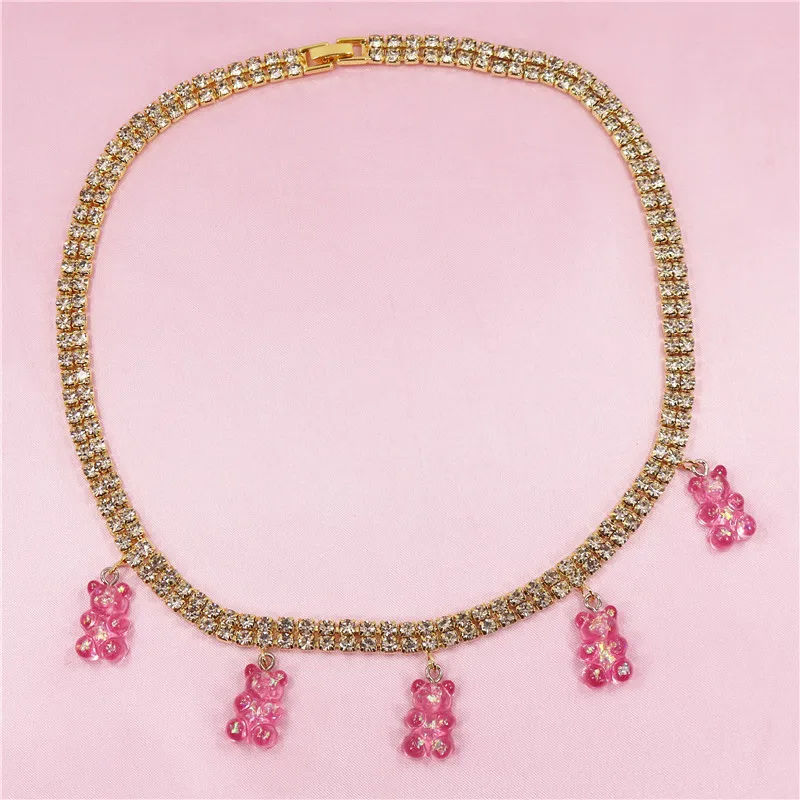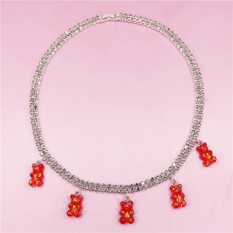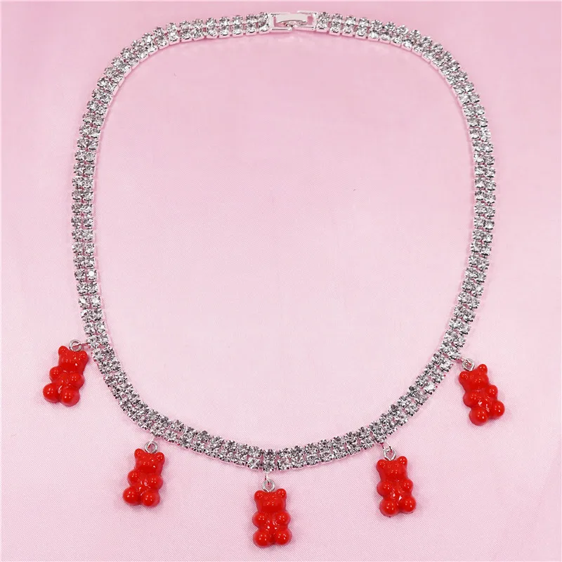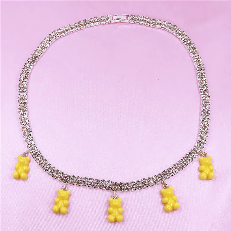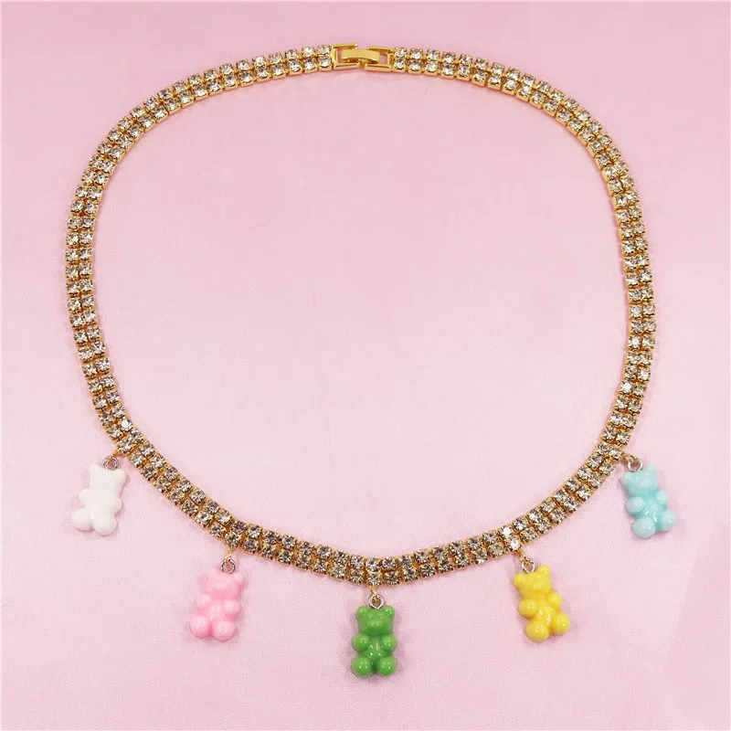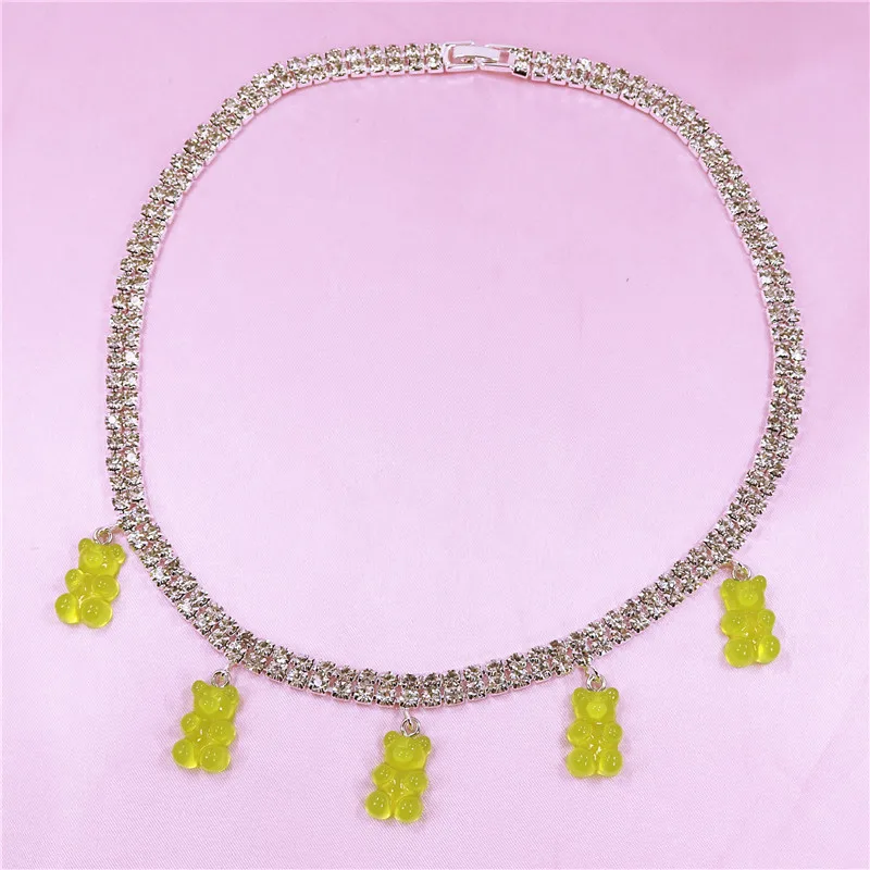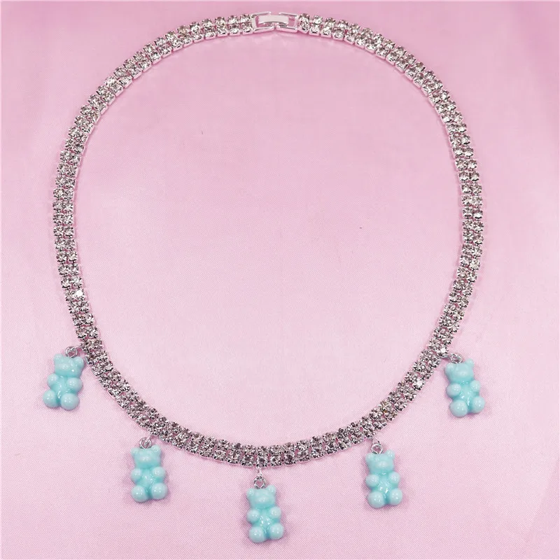 Colorful Rainbow Cute Jelly Bear Gummy Bling Necklaces Pendant for Women Girls Cool Punk Hip Hop Resin Necklaces Accessories