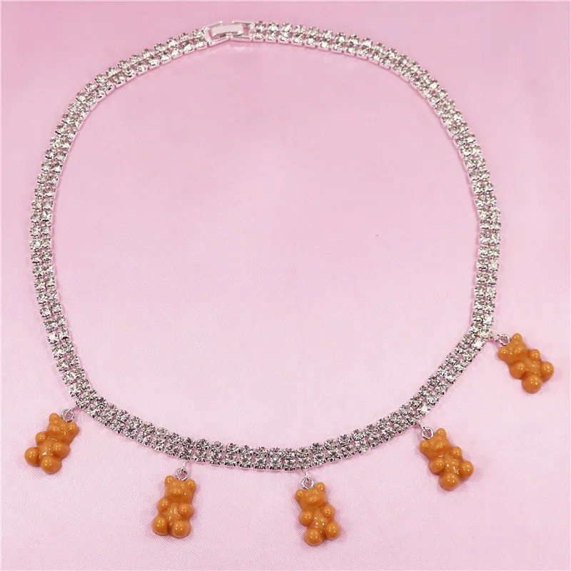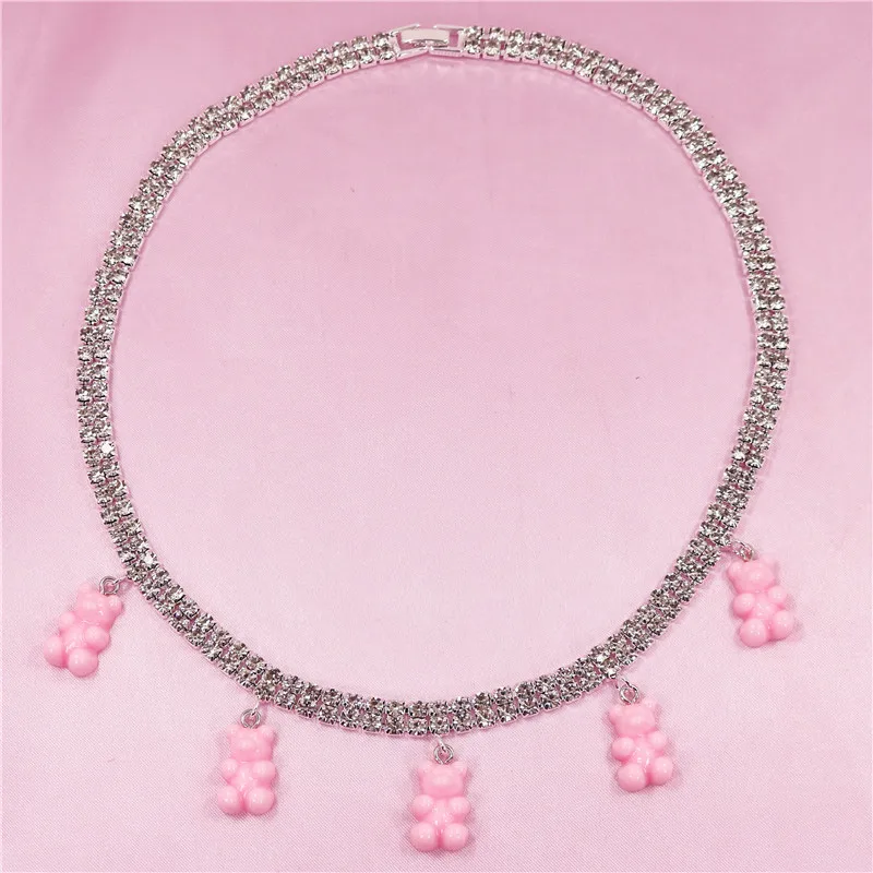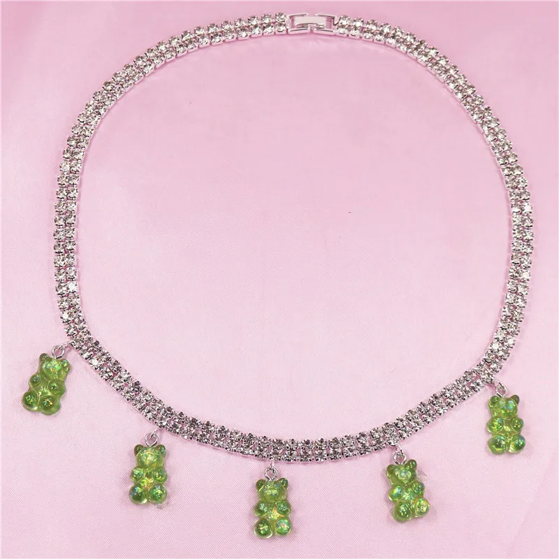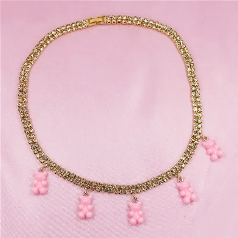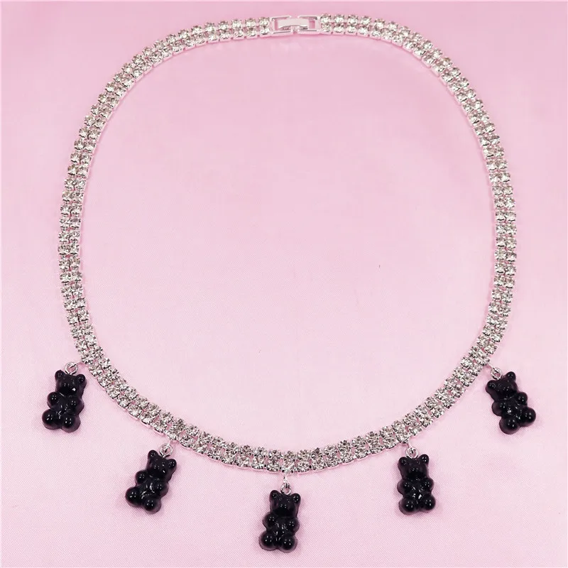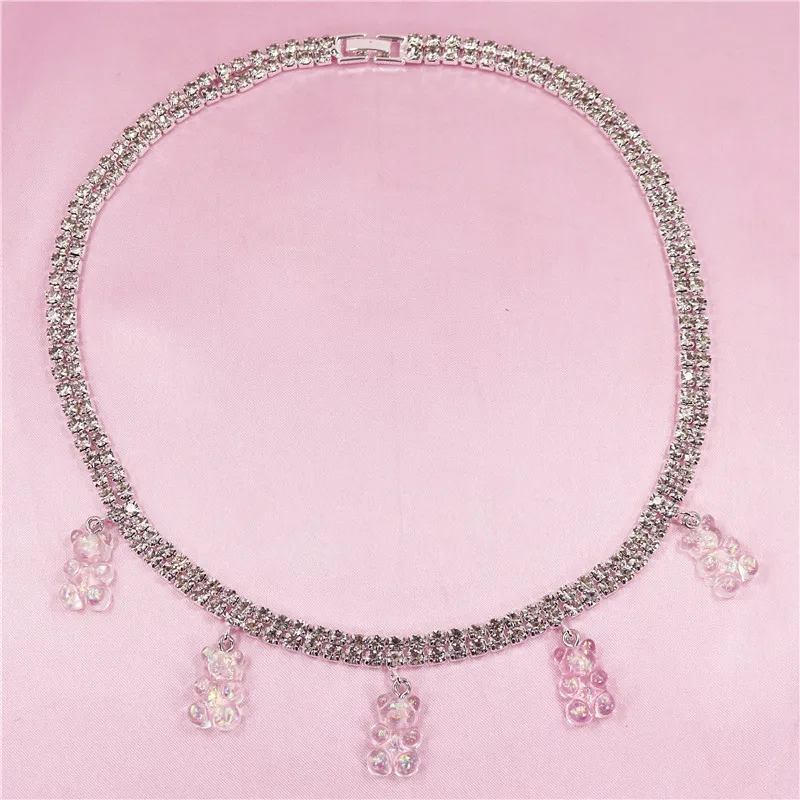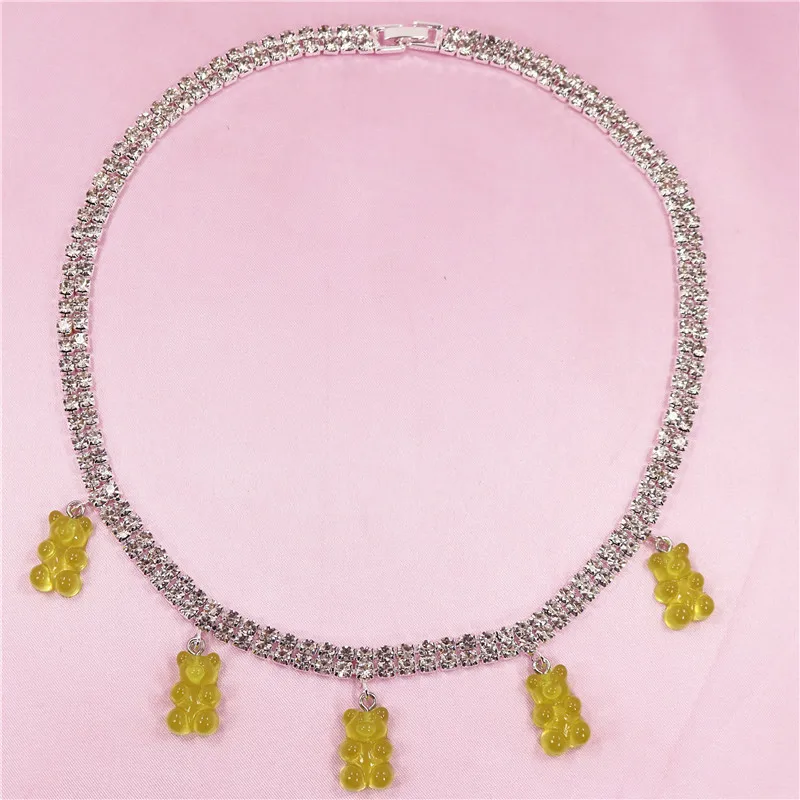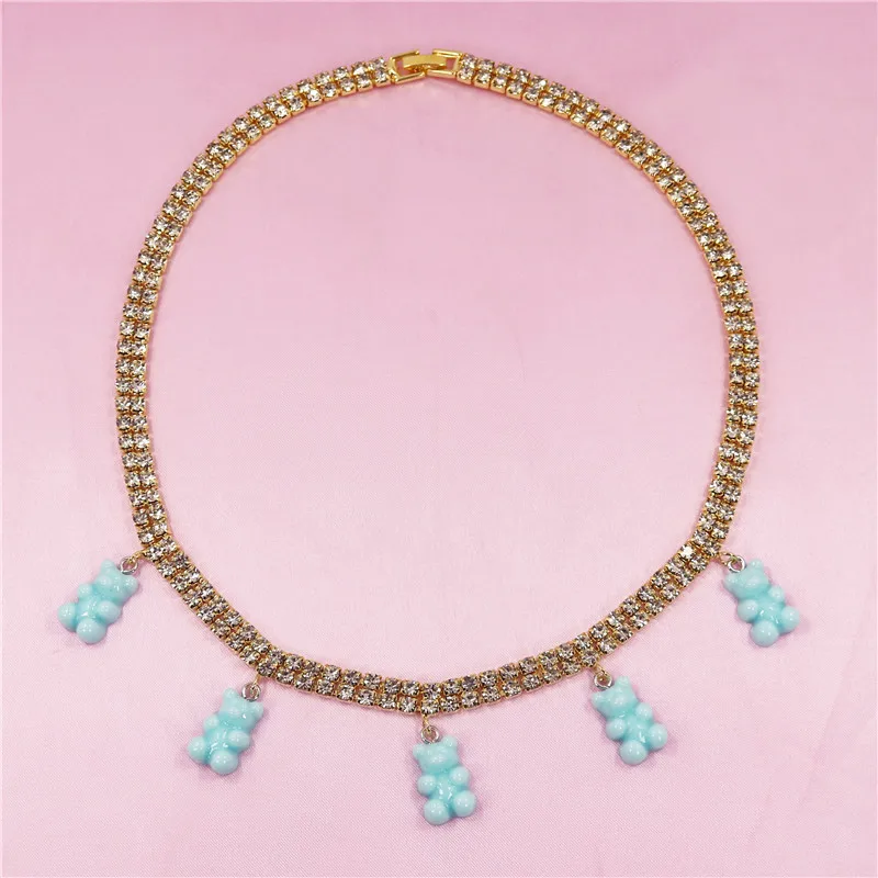 Colorful Rainbow Cute Jelly Bear Gummy Bling Necklaces Pendant for Women Girls Cool Punk Hip Hop Resin Necklaces Accessories