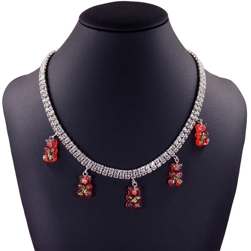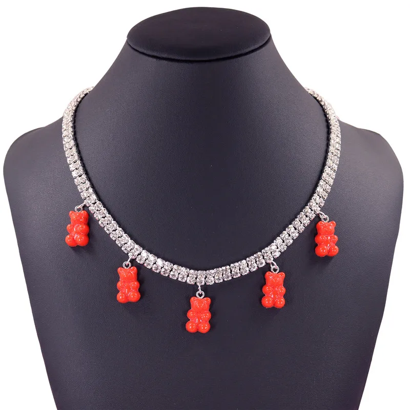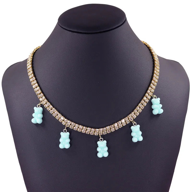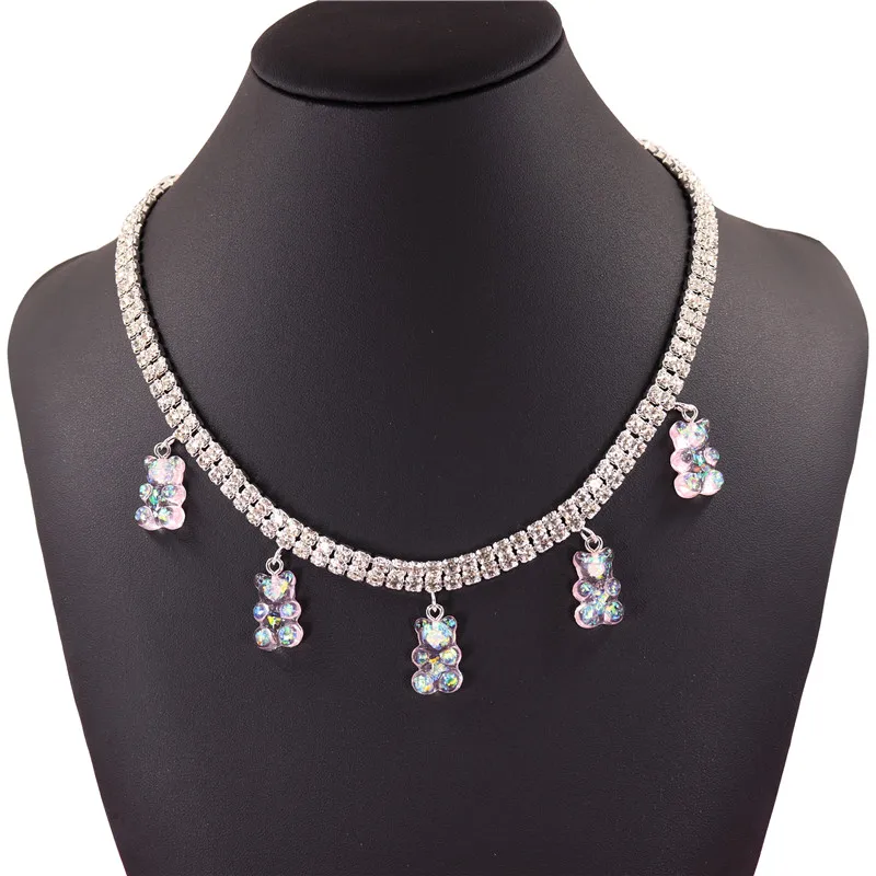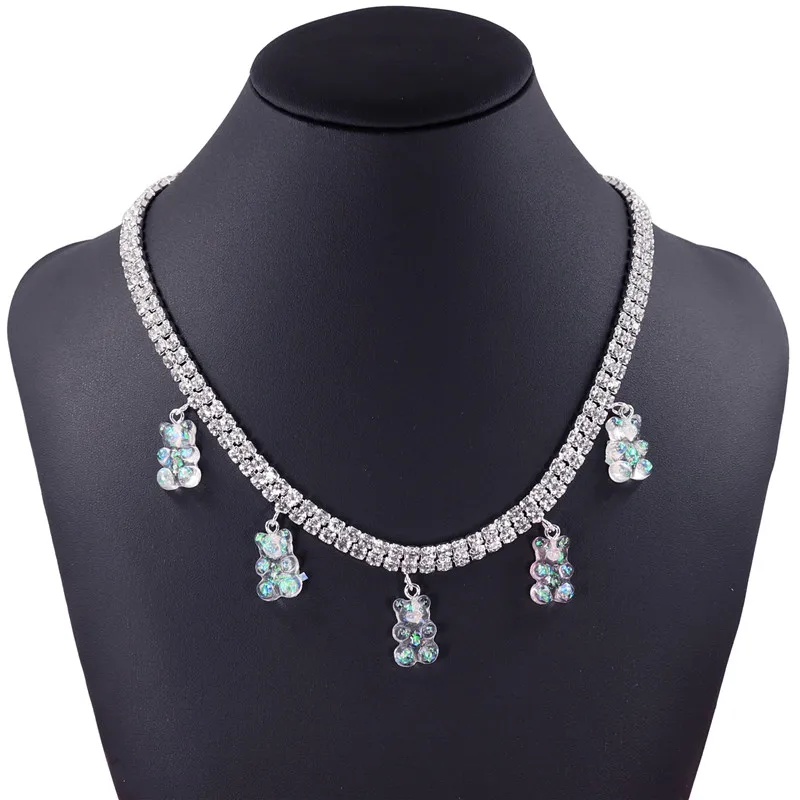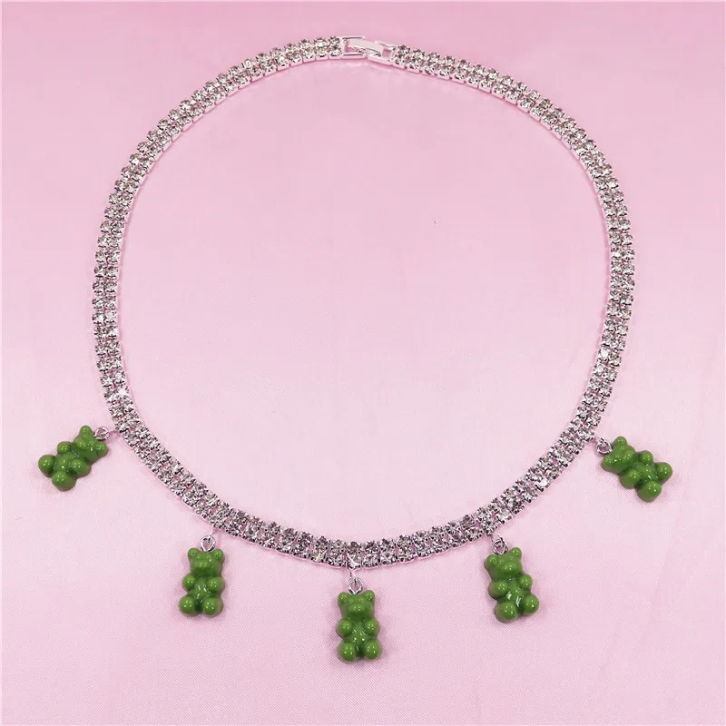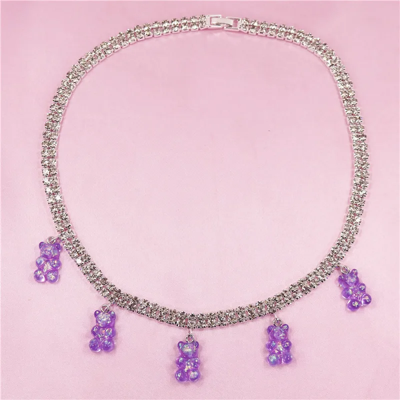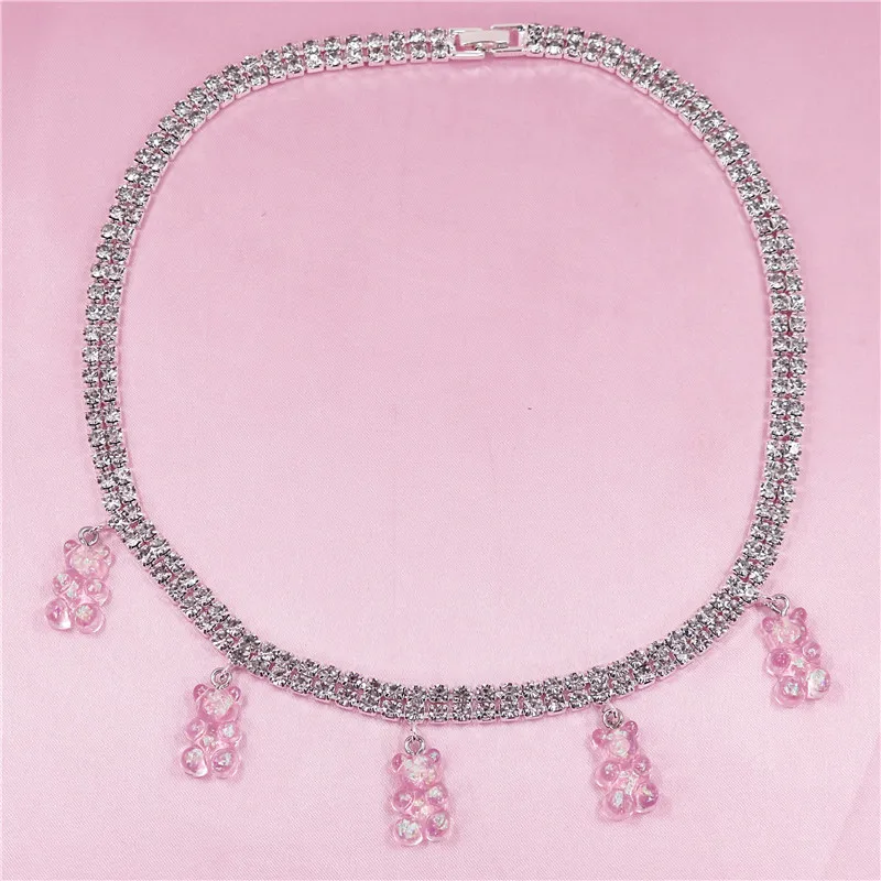 Colorful Rainbow Cute Jelly Bear Gummy Bling Necklaces Pendant for Women Girls Cool Punk Hip Hop Resin Necklaces Accessories