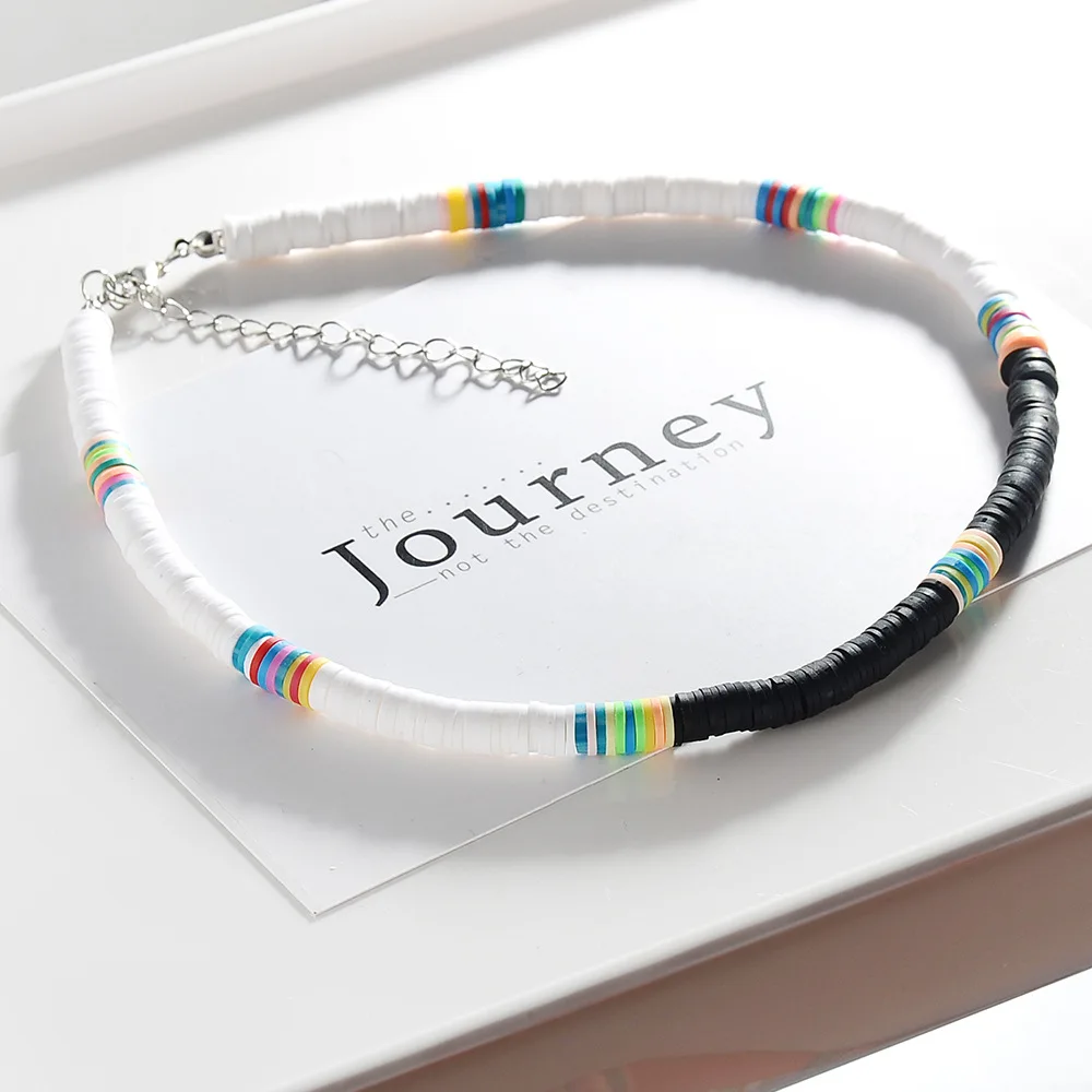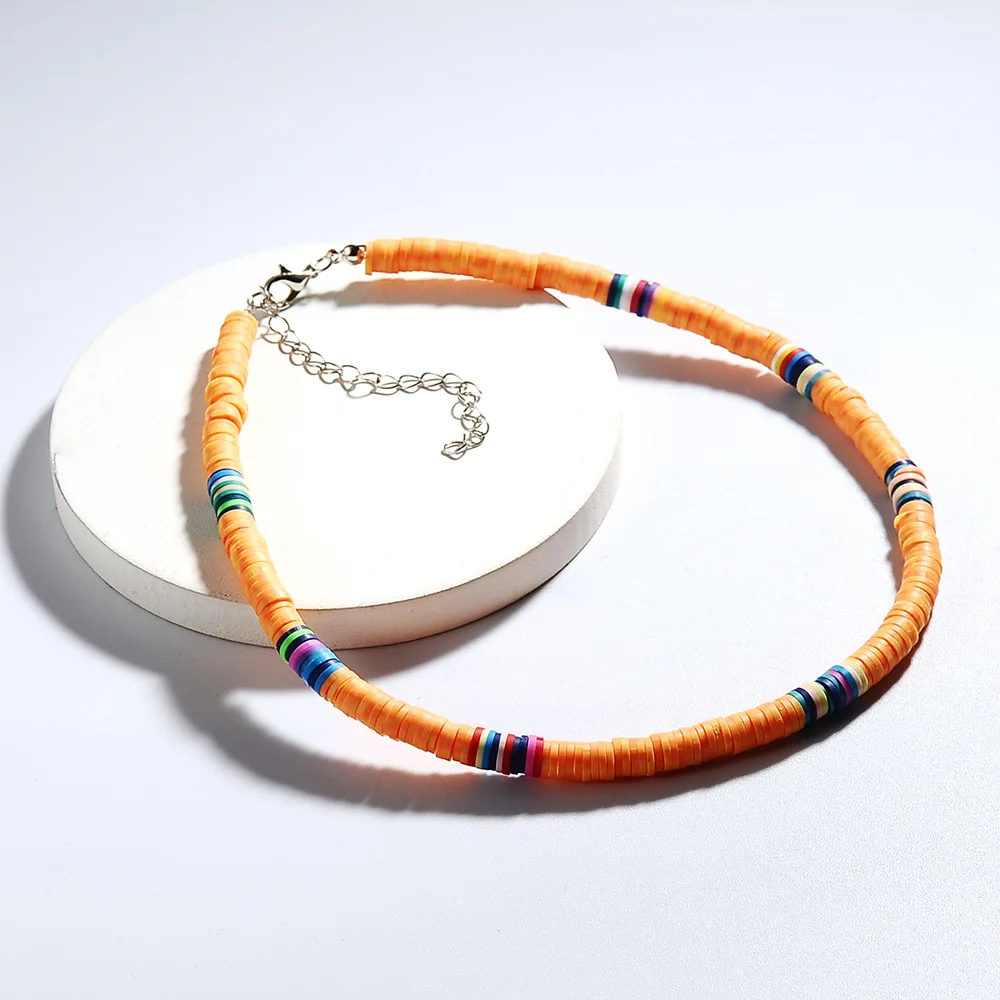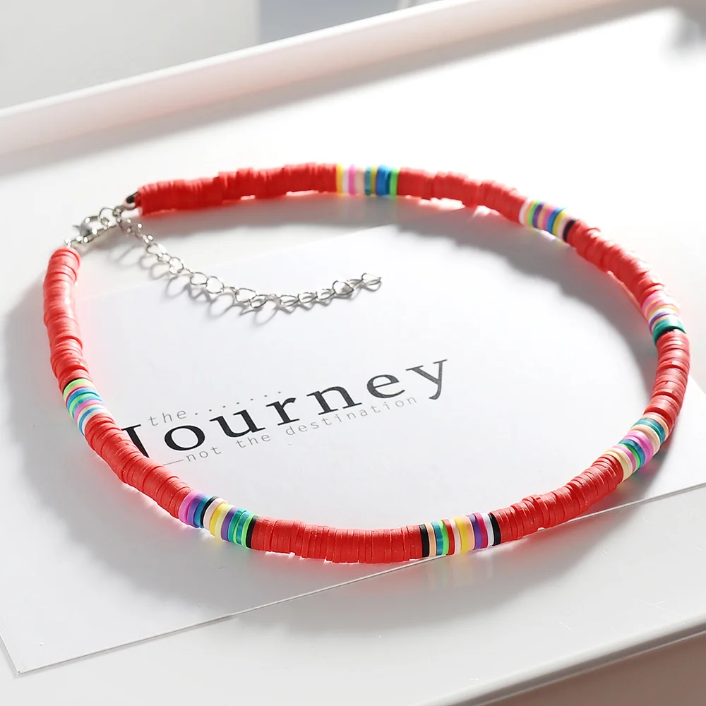 Colorful Soft Ceramics Clay Hollow Circle Beading Handmade Simple Red Yellow Purple Orange White Black Choker Necklace for Women