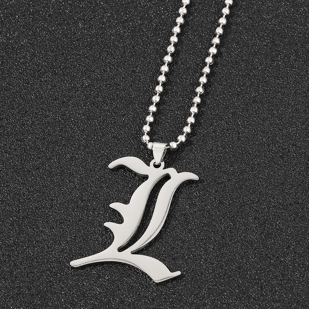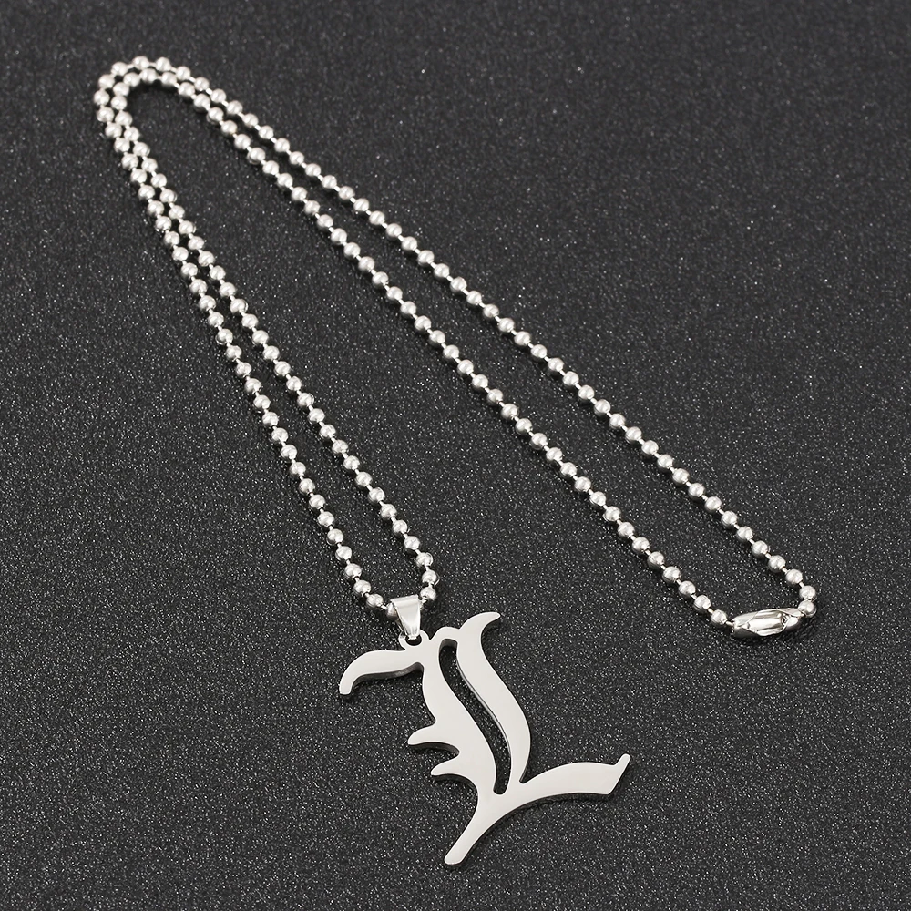 Comic Death Note L Pendant Necklace Cool Stainless Steel Alloy Old English L Letter Accessories Cosplay Jewelry Gift for Fans