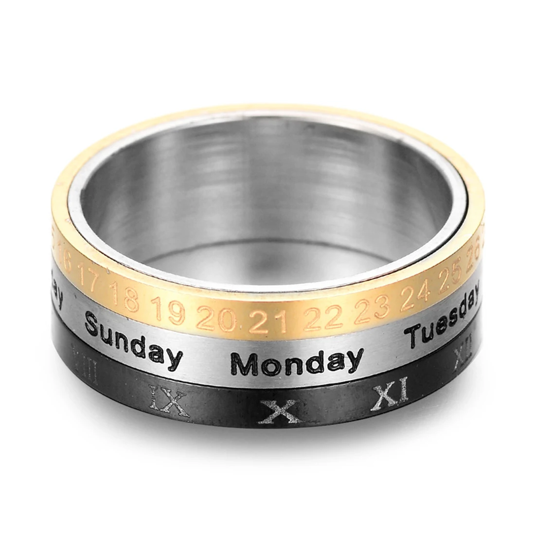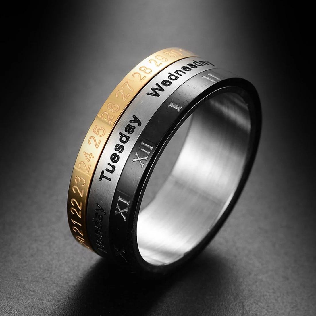 Co Explosive accessories titanium steel rotating ring three color calendar ring of the Roman numeral time hand jewelry
