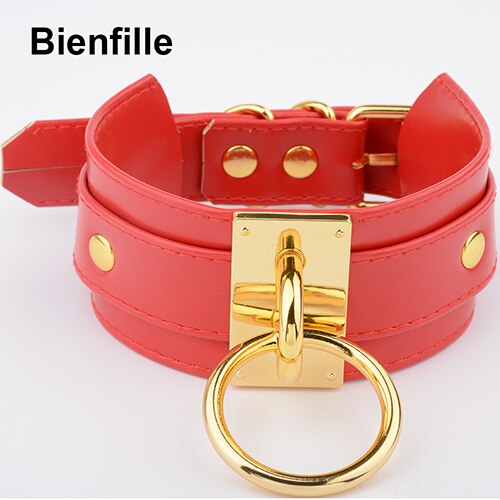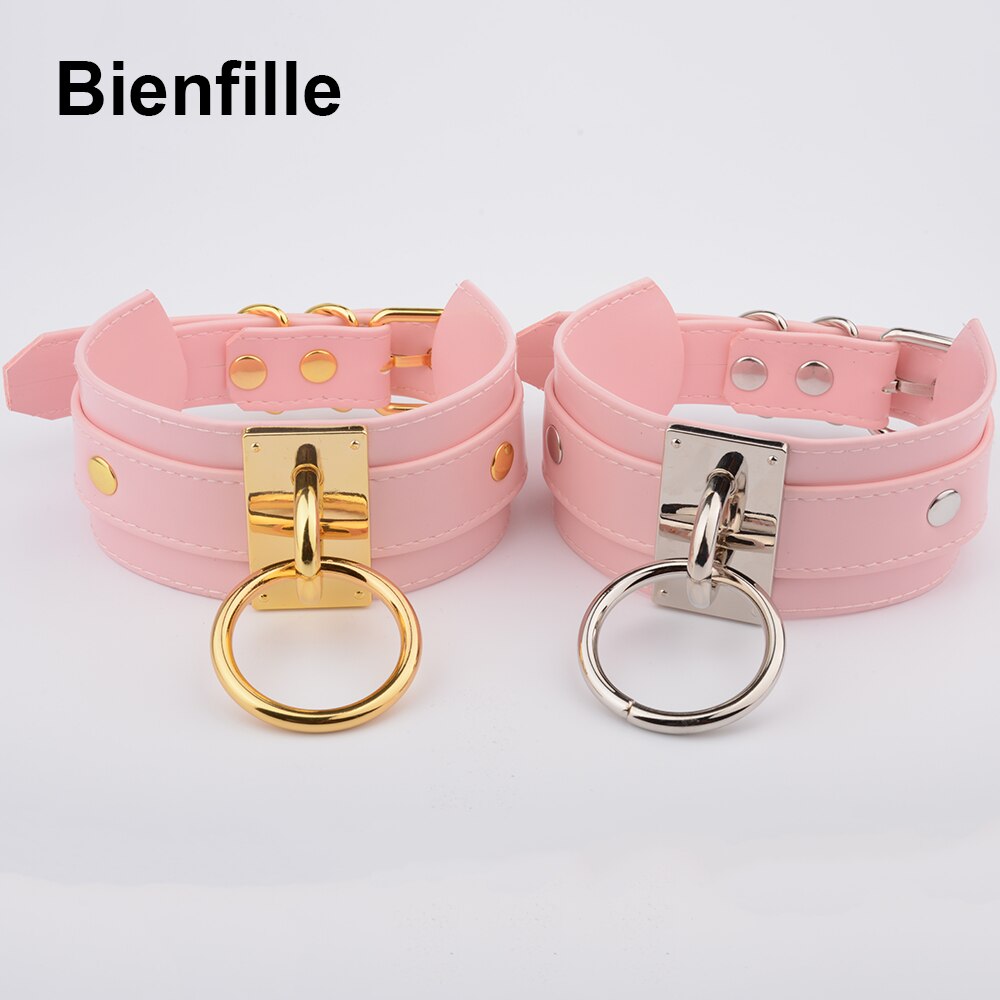 Cool Harajuku Oversized Women Necklace 40mm Gold Metal O Round Collars Kawaii Punk Heavy Duty Bondage BDSM Large Choker
