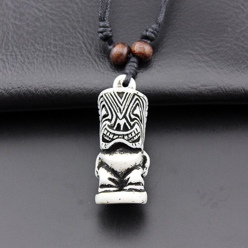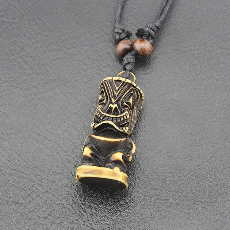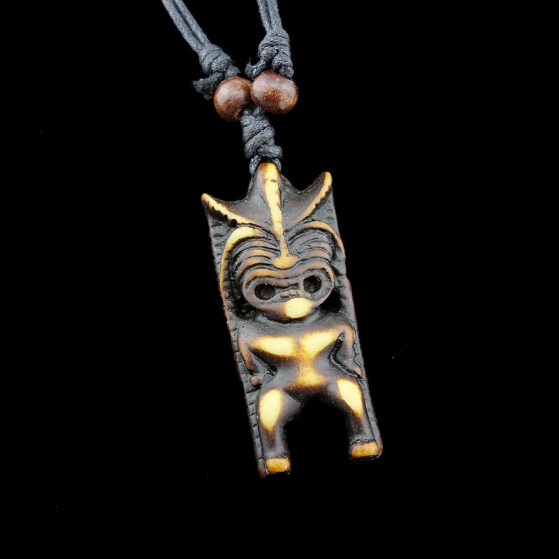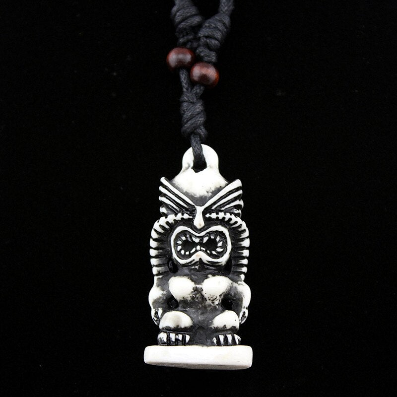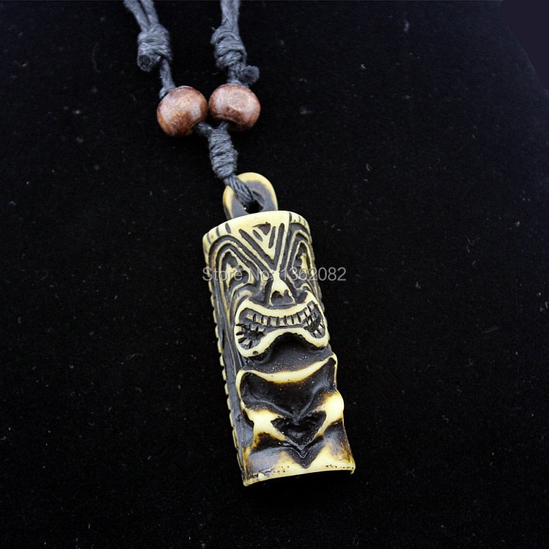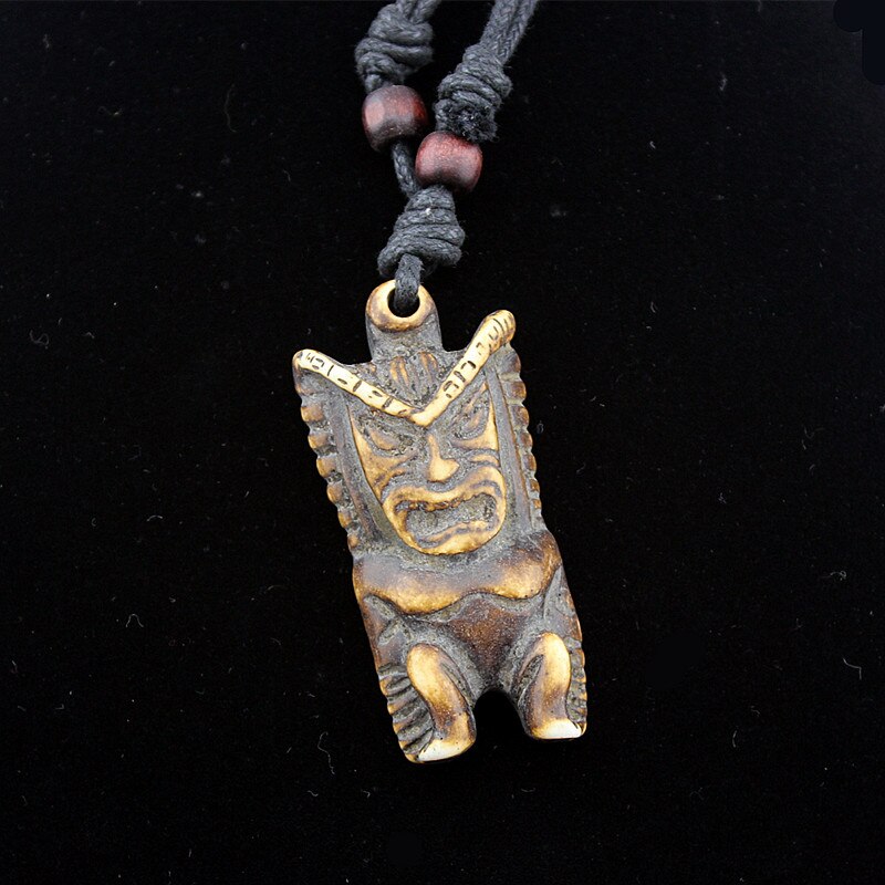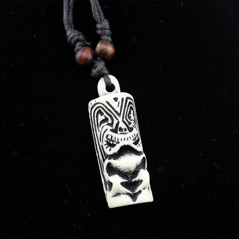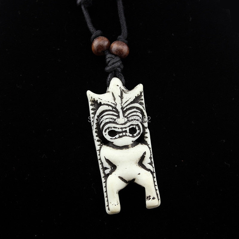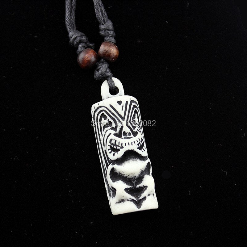 Cool tribal yak bone carved tiki man totem necklace pendant totem luau hula surf girl Talisman Gift