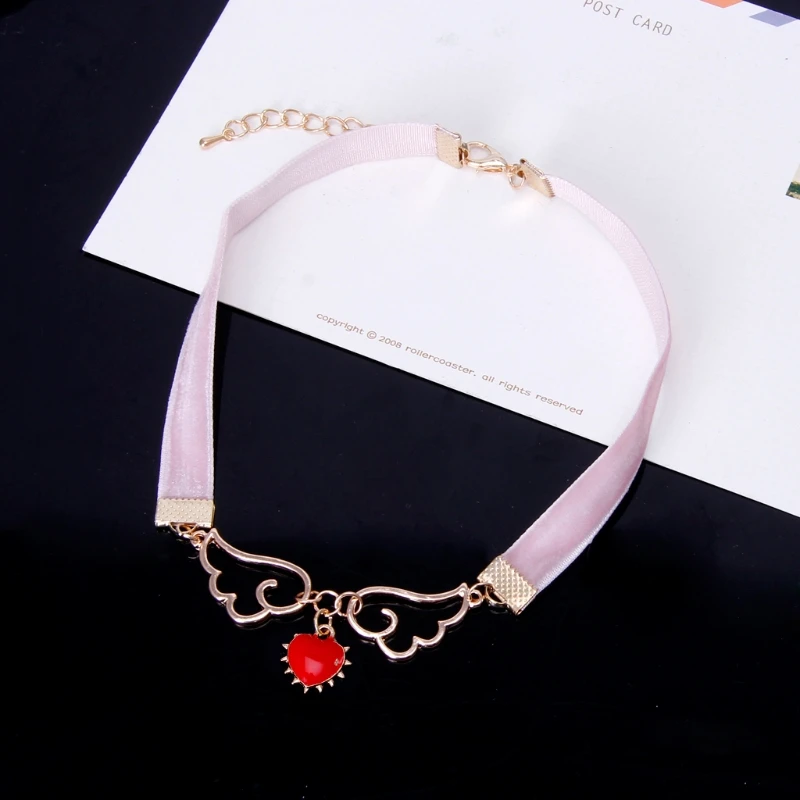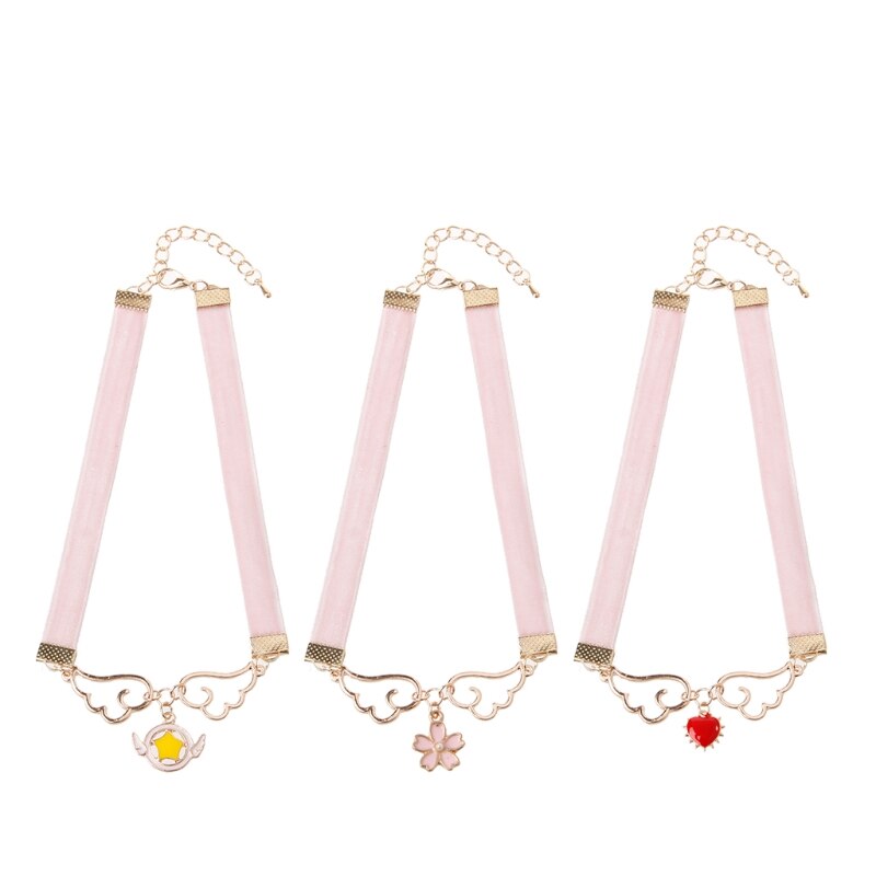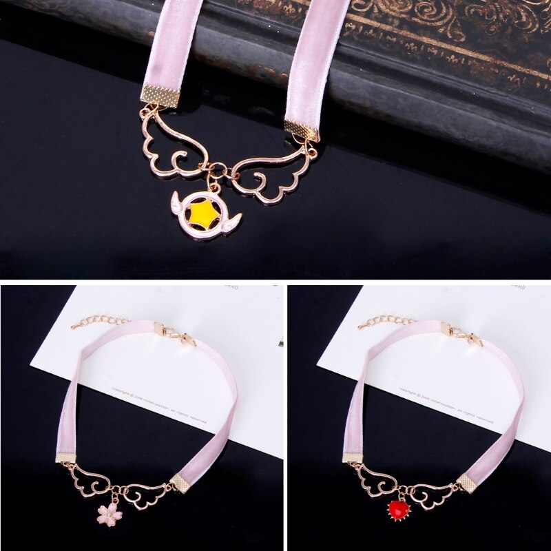 Cosplay Pendant Necklace Enamel Wing Star Heart Card Captor Sakura Velvet Choker