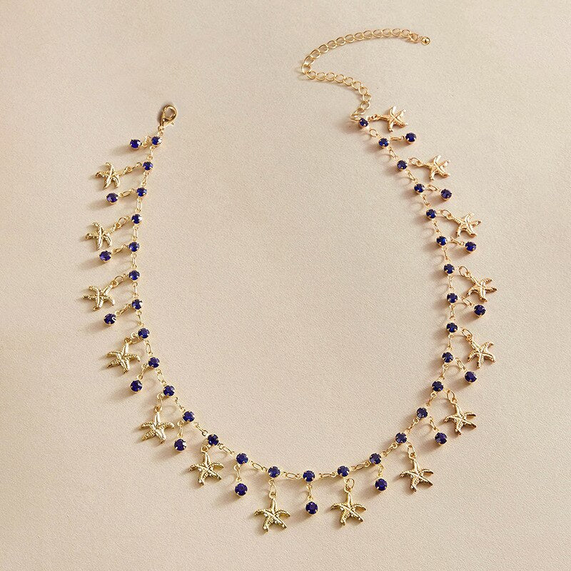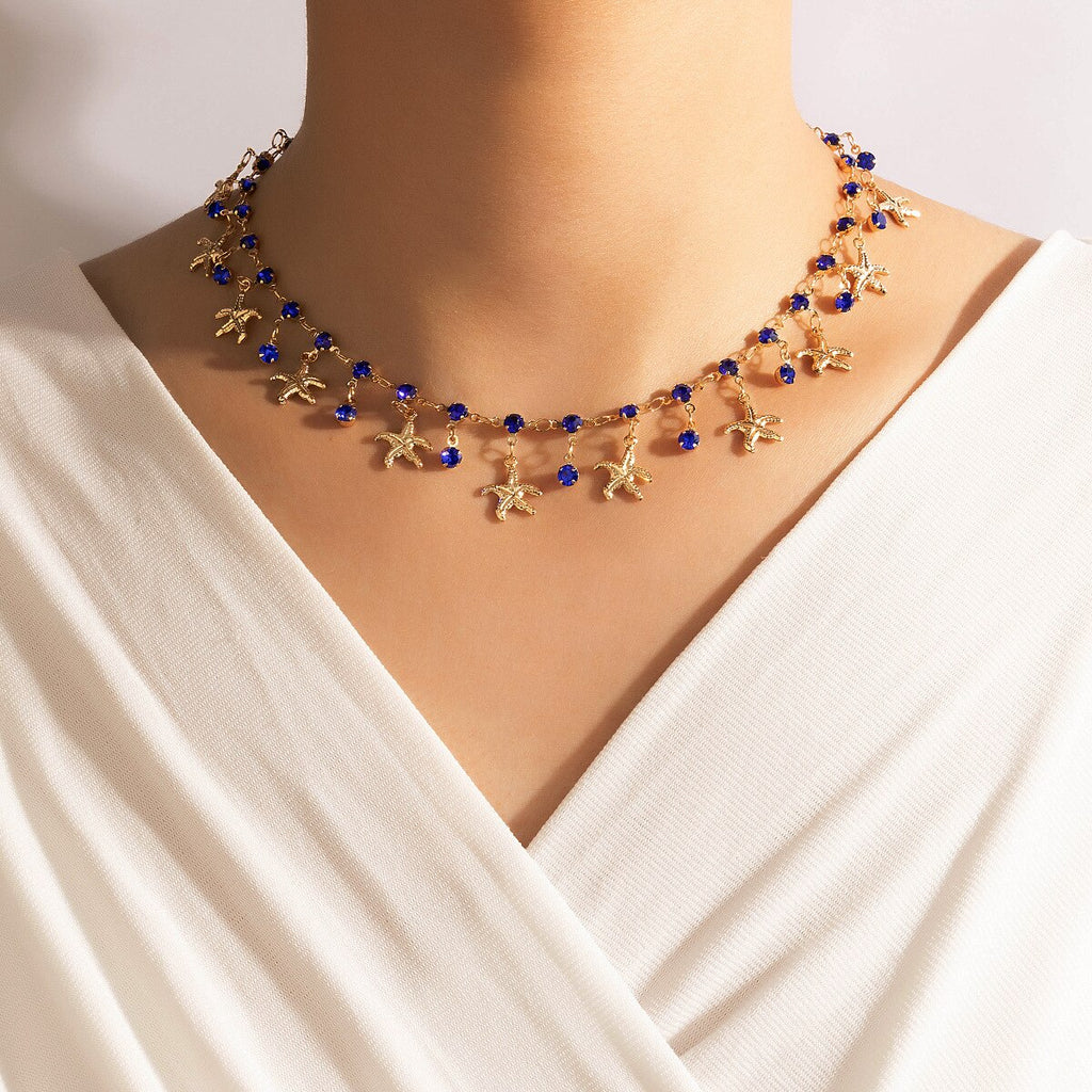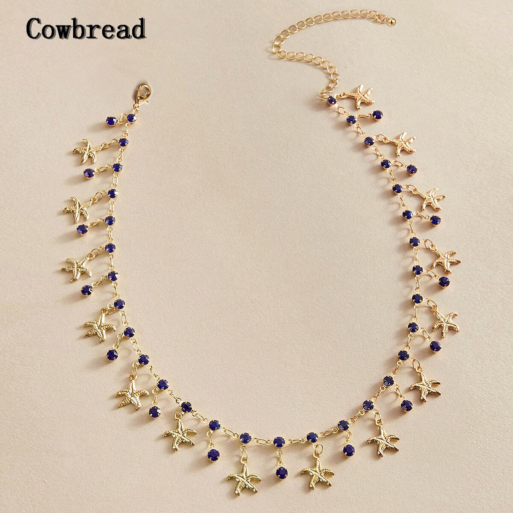 COWBREAD Imitation Gems Necklace for Women Starfish Choker Chain Necklace Women's Neck Chain Jewelry