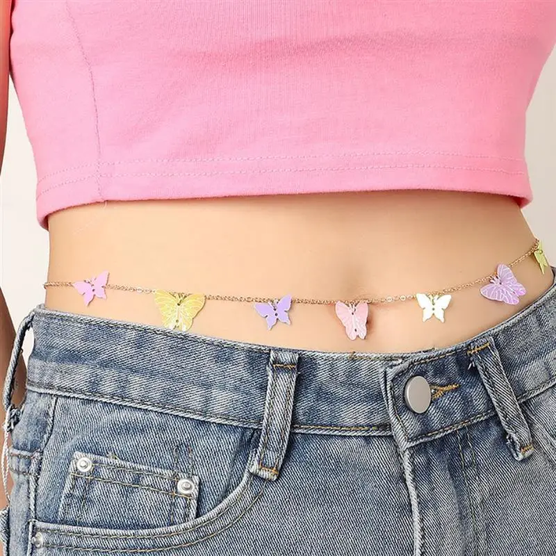 coxeer 1pc Waist Chain Creative Butterfly Sequin Decor Belly Chain Beach Travel Body Chain For Women Jewelry Accessories