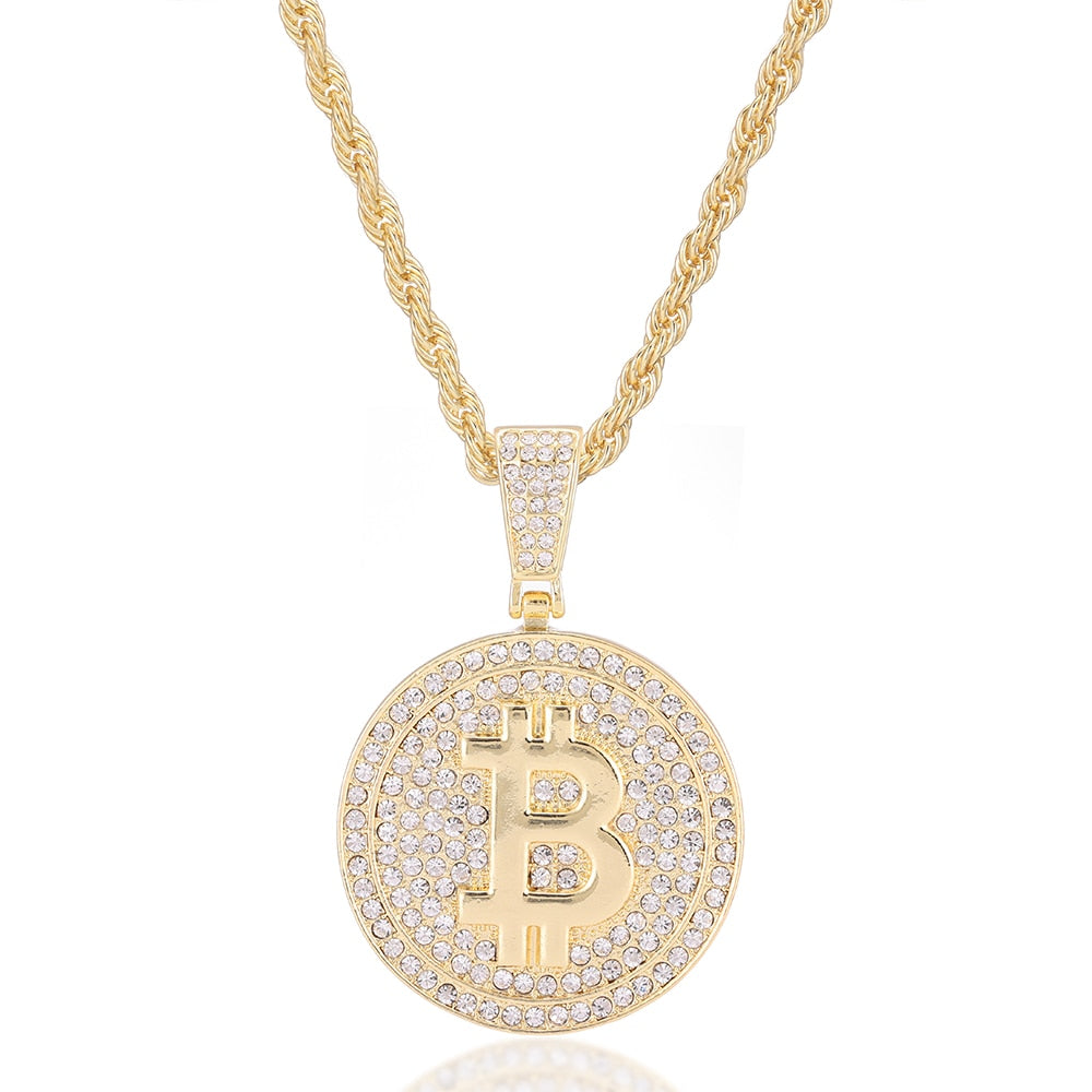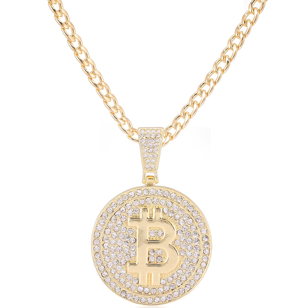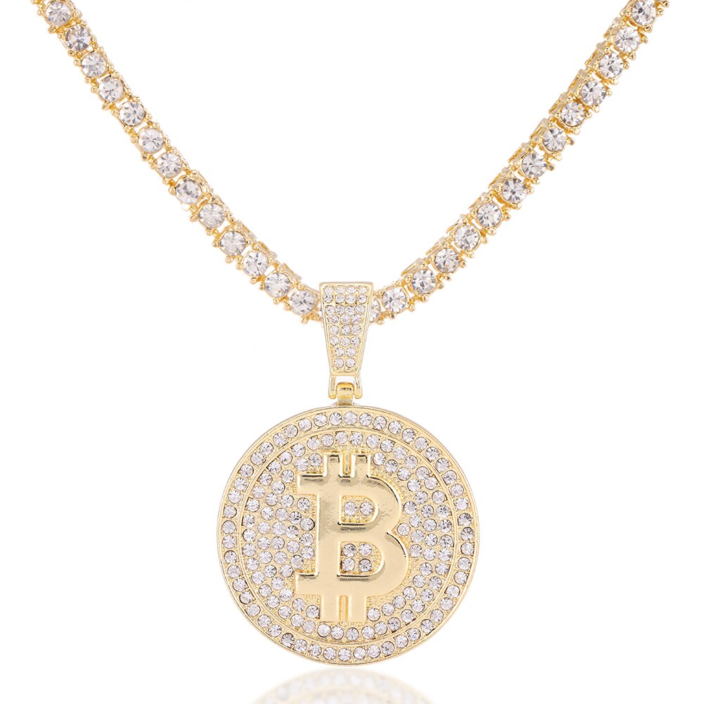 Creative Bitcoin Hip Hop Tennis Necklace Souvenir Collection Gift Bitcoin Ethereum Litecoin Cuba Necklace Gift