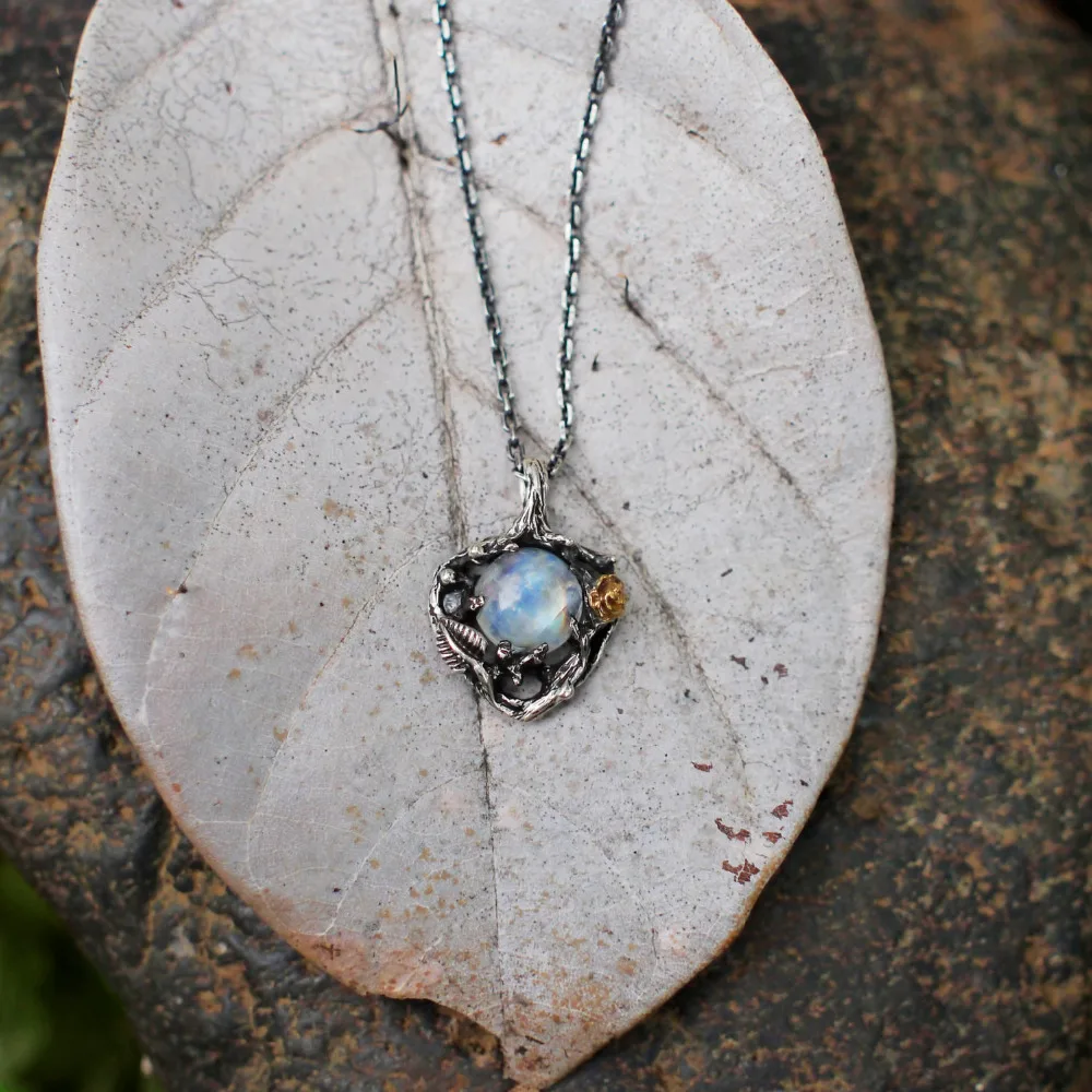 Creative Colorful Natural Moonstone Rose Pendant Europe and America Retro Tree Leaves Branches Color Necklace