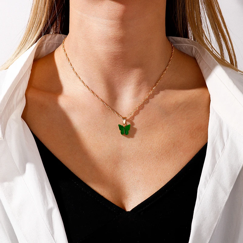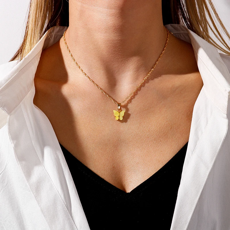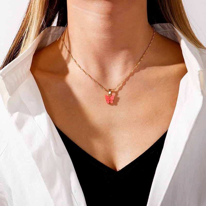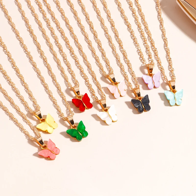 Creative Enamel Mini Butterfly Necklaces for Women Colourful Animals Chain Necklaces Pendants GIrl Daily Jewelry Gifts