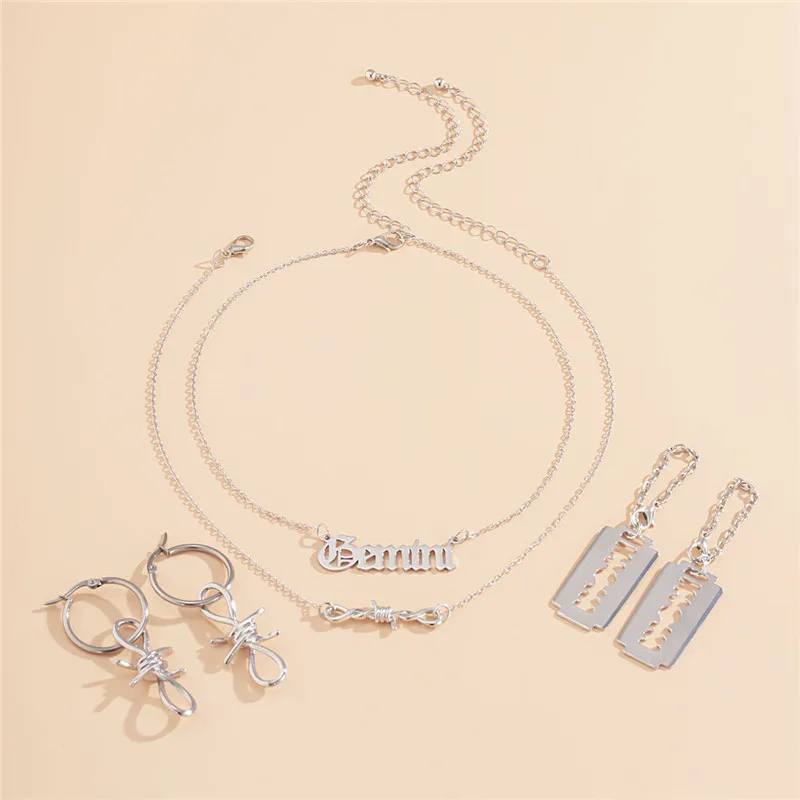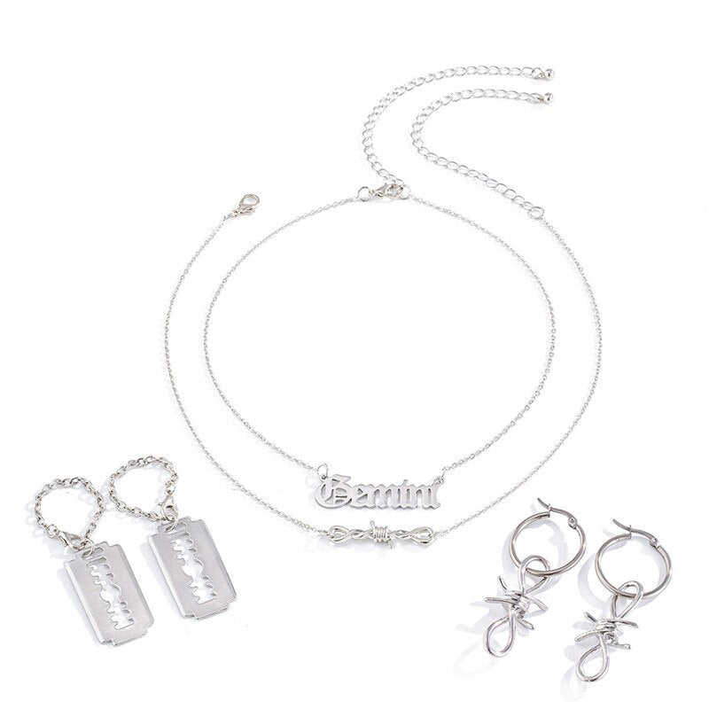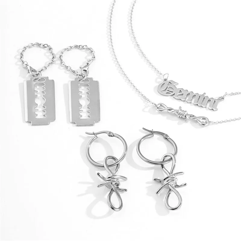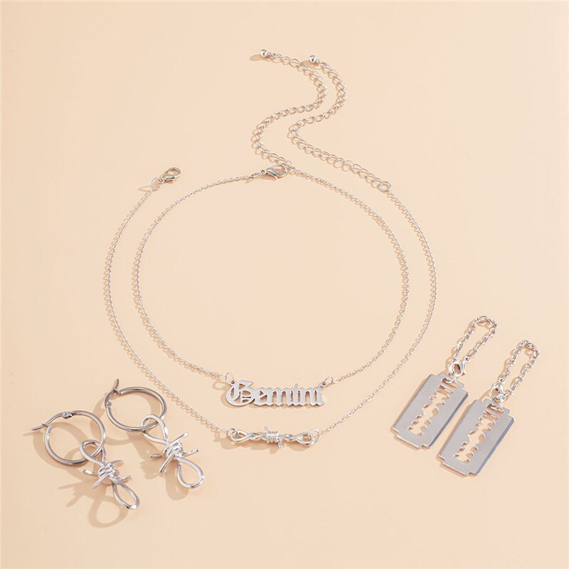 Creative Geometric Irregular Chain Buckle Earrings Personality Simple Letter Necklace Earrings Of Combination Female Jewelry