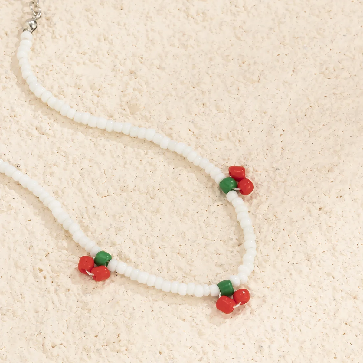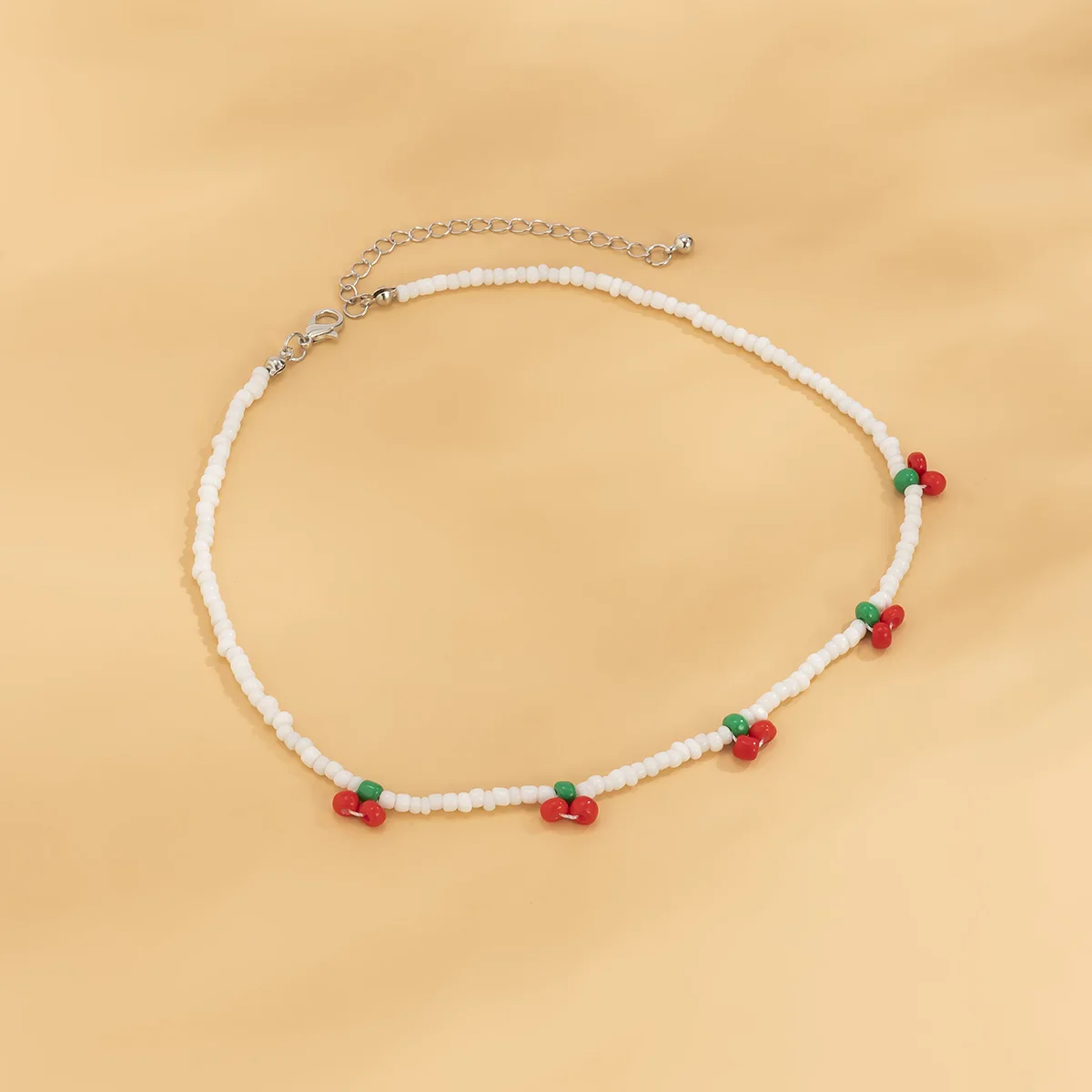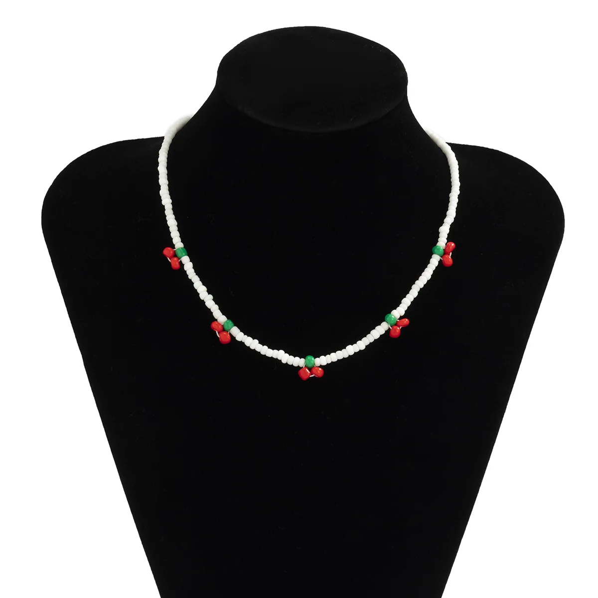 Creative Handmade Bead Cherry Choker Necklace For Women Trendy Bohemian Vintage Beaded Fruit Necklace Party Gift Jewelry Gift