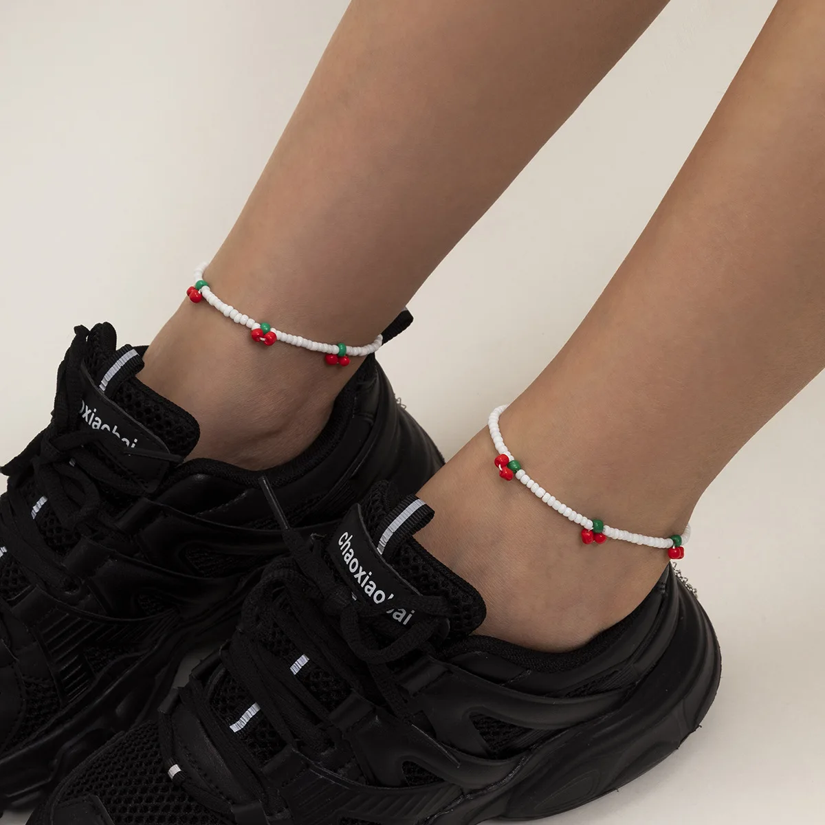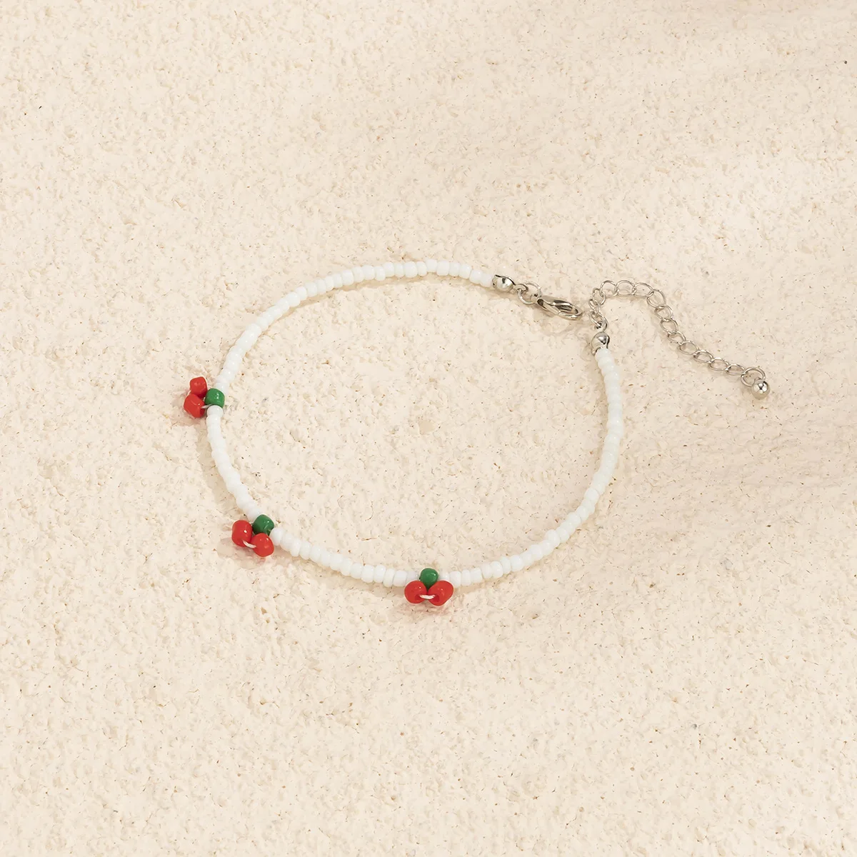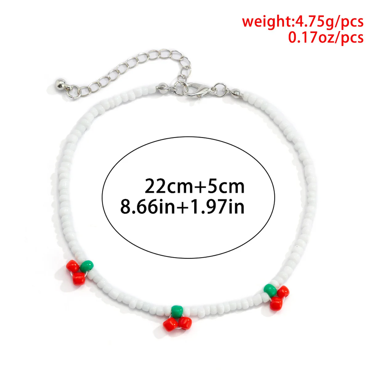 Creative Handmade Bead Cherry Choker Necklace For Women Trendy Bohemian Vintage Beaded Fruit Necklace Party Gift Jewelry Gift