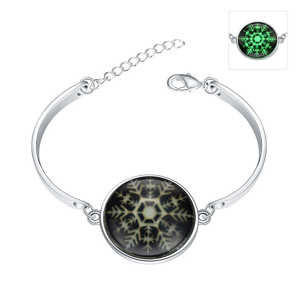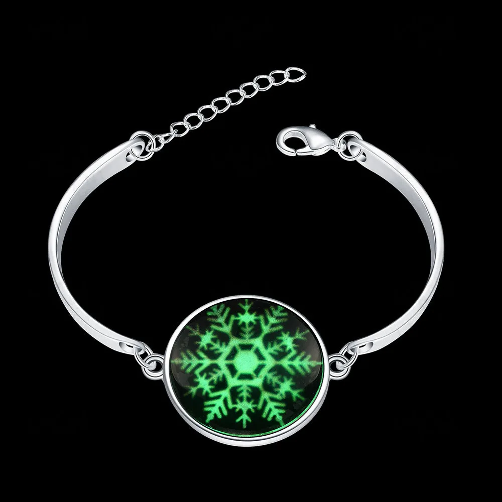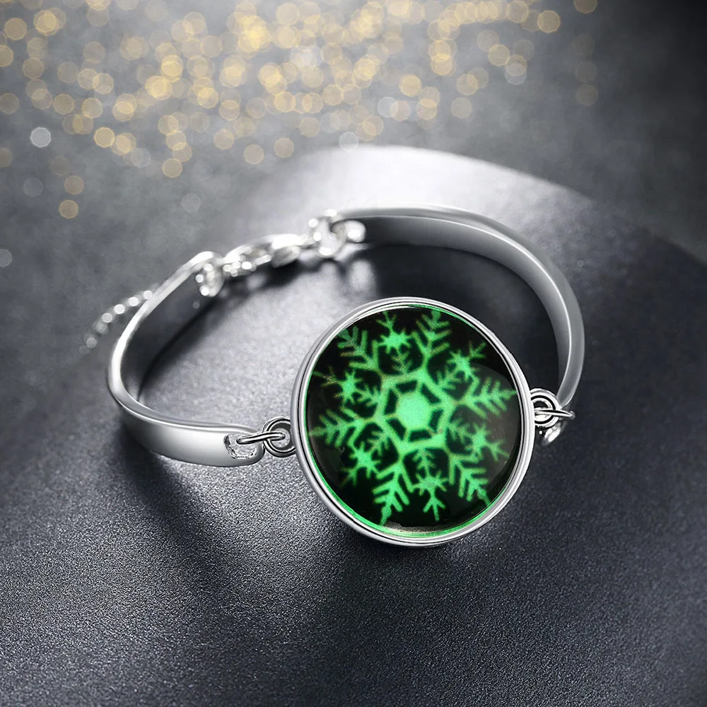 Creative Luminous 925 Sterling Silver Round Bracelet for Unisex Fashion Style Halloween Jewelry Classic Green Trendy Geometric